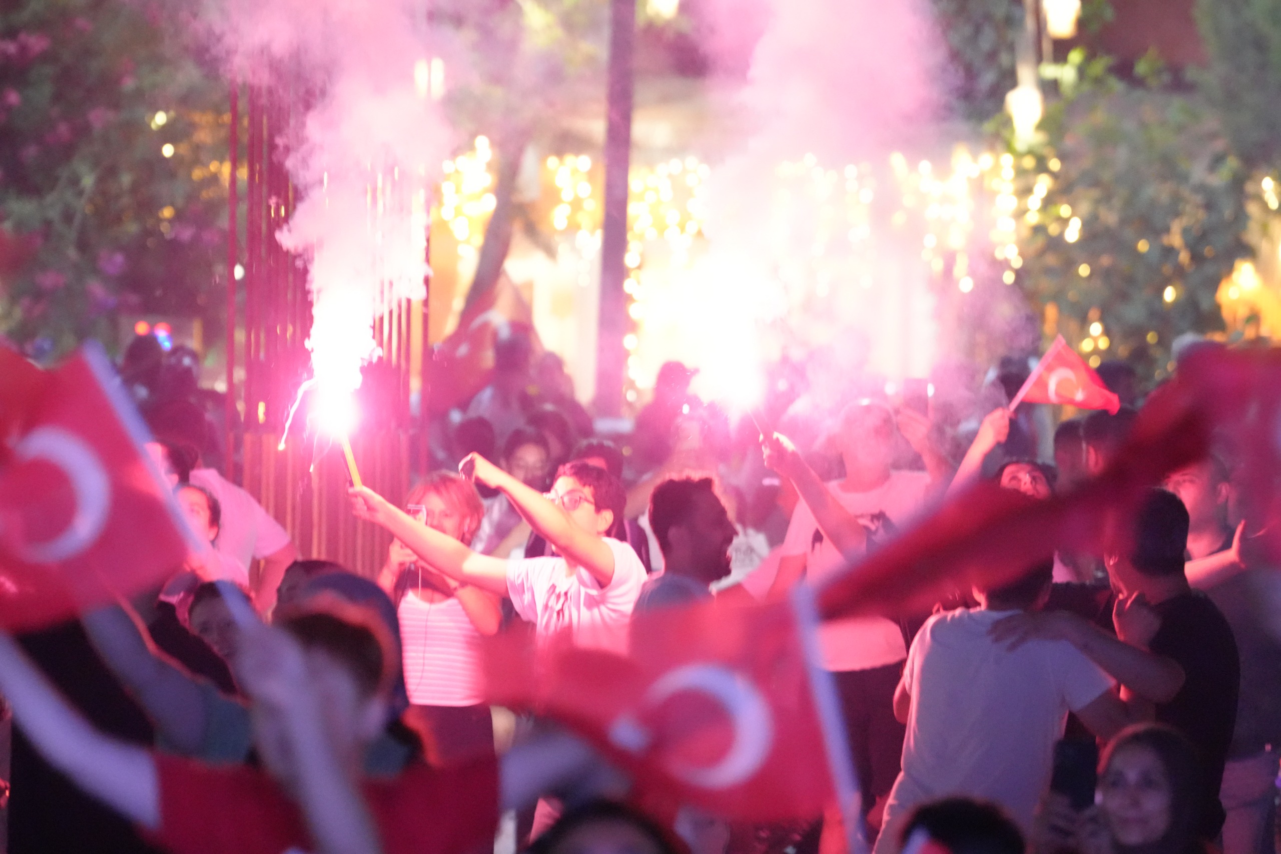 Euro 2024 Avrupa Futbol Şampiyonası'nda Türkiye, Avusturya ile oynadığı son 16 maçından zaferle ayrıldı. Kartal’da milli maç heyecanı kartal Meydanı’nda kurulan dev ekranla yaşandı. Kartal Belediye Başkanı Gökhan Yüksel’in de katılarak heyecana ortak olduğu maç nefesleri kesti.Maçı heyecanla takip eden yüzlerce Kartallı, milli takıma alkış ve tezahüratlarla destekte bulundu. Türkiye'nin Avusturya karşısındaki 2-1'lik galibiyetinin ardından vatandaşlar meydanda büyük sevinç yaşadı. Coşkulu kalabalık, Türk bayraklarıyla milli takımın başarısını doyasıya kutladı.Meydanı saran bu coşkuya Kartal Belediyesi Başkanı Gökhan Yüksel, Kartal İlçe Başkanı Mert Polat, CHP Parti Meclis Üyesi Baki Aydöner, Başkan Yardımcıları, Birim Müdürleri ve Meclis Üyeleri de dahil oldu.Maç sırasında meydanı dolduran yüzlerce Kartallı, coşku dolu anlar yaşadı. Hep birlikte galibiyet sevincini yaşayan Kartallılar, çeyrek finale yükselen A Milli Takımın başarısını kutladı. Milli takımın galibiyeti hakkında konuşan Başkan Gökhan Yüksel, “Milli maç heyecanı ülkemizde hat safhada. Bu galibiyete çok ihtiyacımız vardı. Milli takımımızın zaferleriyle moral ve motivasyonumuz üst noktaya geliyor. Kartallı komşularımızla bütün dileğimiz ve temennimiz milli takımımızın başarılı olmaya devam etmesidir.” dedi.