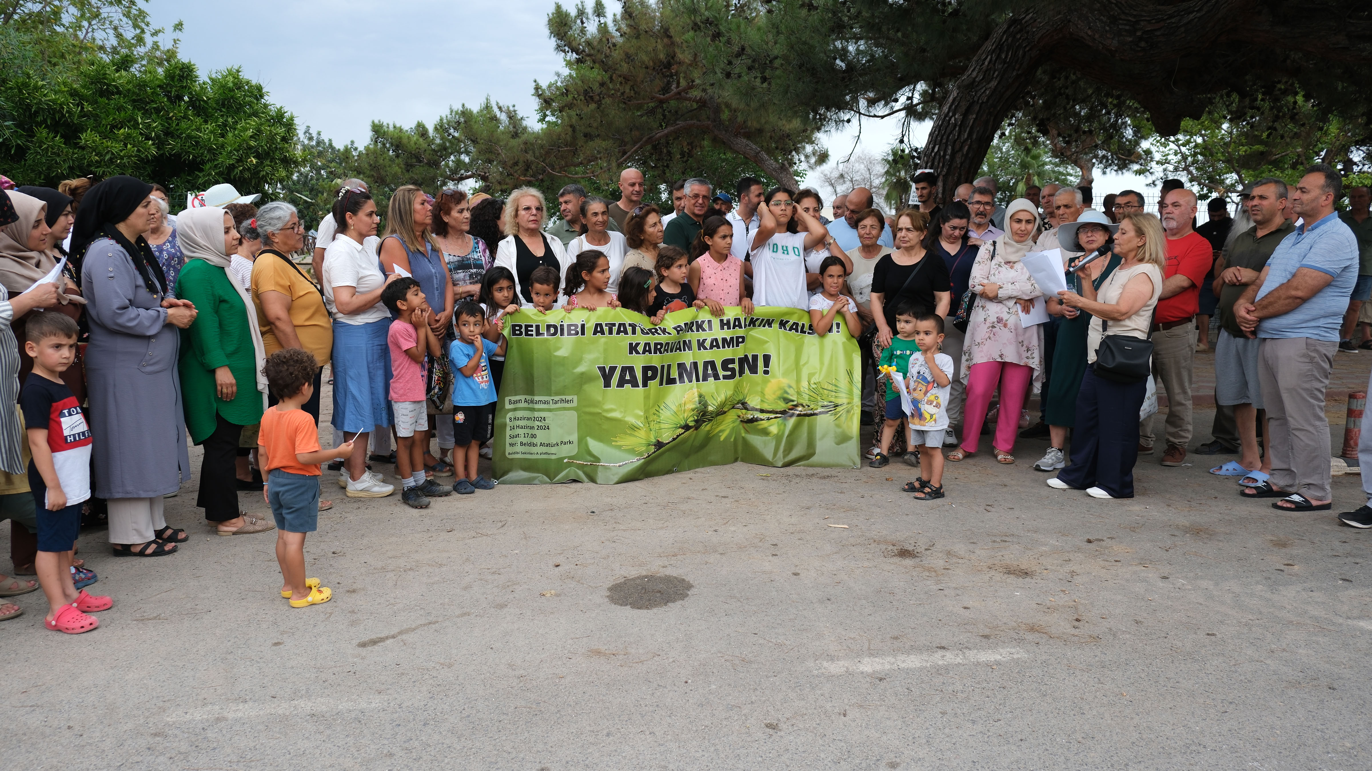 Beldibi Mahallesi’nde yer alan Atatürk Parkı’nın Kültür ve Turizm Bakanlığı tarafından karavan kampına dönüştürmesi ve restoran açılmasına bölge halkı tepki gösterdi.Atatürk Parkı’nda toplanan kalabalığa, Kemer Belediye Başkanı Necati Topaloğlu, kemer belediyesi Başkan Vekili Semih Top, Kemer Belediyesi Meclis Üyeleri Sema Özdemir, Hüseyin Çelik, CHP Kemer İlçe Başkanı Sedat Karakaya, partililer, Beldibi Sakinleri ve A Platformu Sözcüsü Hediye Gündüz ile çok sayıda vatandaş destek verdi. Atatürk Parkı önünde toplanan vatandaşlar, “Karavan kampı istemiyoruz” diye slogan atarak Kültür ve Turizm Bakanlığı’nın aldığı karara itiraz etti. Kemer Belediye Başkanı Necati Topaloğlu, vatandaşlara hitaben yaptığı konuşmasında, “Beldibi Belediyesi eski başkanı rahmetli Abdullah Çelik burayı parka dönüştürmüştü. Mekanı cennet olsun. Burası 3 yıl öncesine kadar özel bir şirketteydi ve kimseyi buraya sokmuyorlardı.Ben bizzat Kültür ve Turizm Bakanı Mehmet Nuri Ersoy’un yanına giderek ‘Sayın bakanım, buradaki çalışmayı önlemezseniz Beldibi halkının denize girebilecek bir yeri kalmayacak’ dedim. Sayın bakan Milli Parklar Genel Müdürünü aradı ve Atatürk Parkı’nın tahsisini bize verdin dedi. Buranın tahsisini bakanlık aldı. Çamyuva ve Tekirova Mahallesi’ne birer tane park yaptılar.Beldibi Çifteçeşmeler mevkisinde de bir tane yaptılar. Şimdi de buraya yapıyorlar. Buraya 26 tane karavan girebilecekmiş. Bakan beyle konuşarak bu işin çözüleceğine inanıyorum. Burayı bakanlık almasaydı eğer buraya kimse giremiyordu. Bu karavan kampı işini ben çözeceğim. Hepinize teşekkür ediyorum.” dedi. Beldibi Sakinleri ve A Platformu Sözcüsü Hediye Gündüz ise Beldibi Mahallesi’nde bulunan Atatürk Parkı’nın denize girilebilen ve halkın kullandığı tek park olduğunu söyledi. Parkın geçmişte orman alanı olduğunu ve 1995 yılında Kültür ve Turizm Bakanlığına devredildiğine dikkat çeken Gündüz, “İlk yanlış 1995 yılında yapıldı. Beldibi’nde yer alan sahil kısımlarının hemen hemen hepsi halka bırakılmadı. Her yer otellere verildi. Son kalan Atatürk Parkımıza ise el konulmaya çalışılıyor. 1994 yılında Beldibi Belediyesi meclis kararı alarak ormanlık alanı Atatürk Parkı’na dönüştürmüş ve halkın nefes alacağı bir yer oluşturmuştu.” dedi. Gündüz, Atatürk Parkı’nın halkın elinden alınmaya çalışıldığını ifade ederek, “İki yıl önce Kültür ve Turizm Bakanlığı buraya restoran yapmıştı. Halkın parkta kullandığı alan daraltılmıştı. Geri kalan kısmına da karavan kampı yapılıyor ve inşaat sahası haline getirildi. Çocuklarımızın oyun alanının elinden alınması çocuk haklarını çiğnemektir. Çocuklarımızın hakkını çiğnetmeyeceğiz. Beldibi’nde imar yoktur. İmar olmadığı için hukuksuz olan bu çalışma durdurulmalıdır.” dedi.