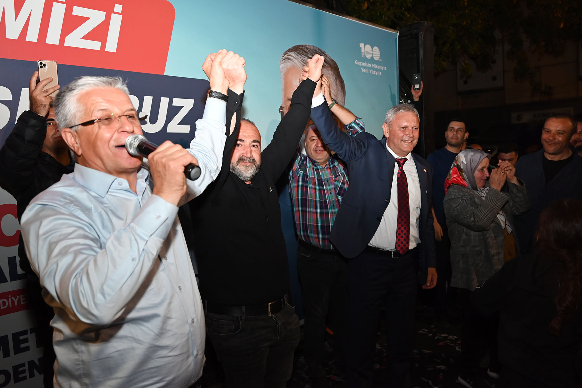 Başkan Topaloğlu, Kemer Belediyesi önünde kurulan sahneye çıkarak burada bir konuşma yaptı.