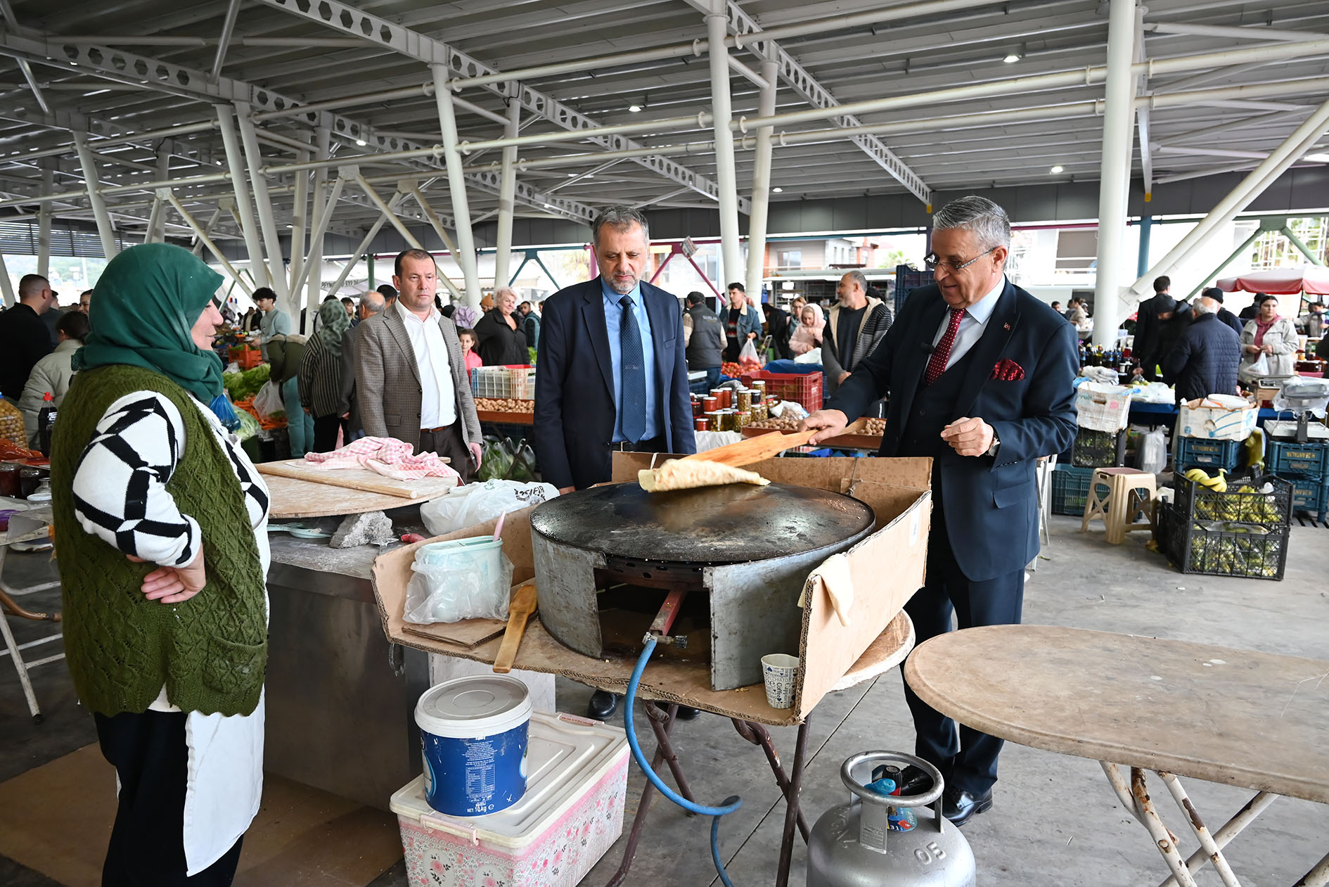 Kemer Belediye Başkanı Necati Topaloğlu'ndan pazar esnafına ziyaret