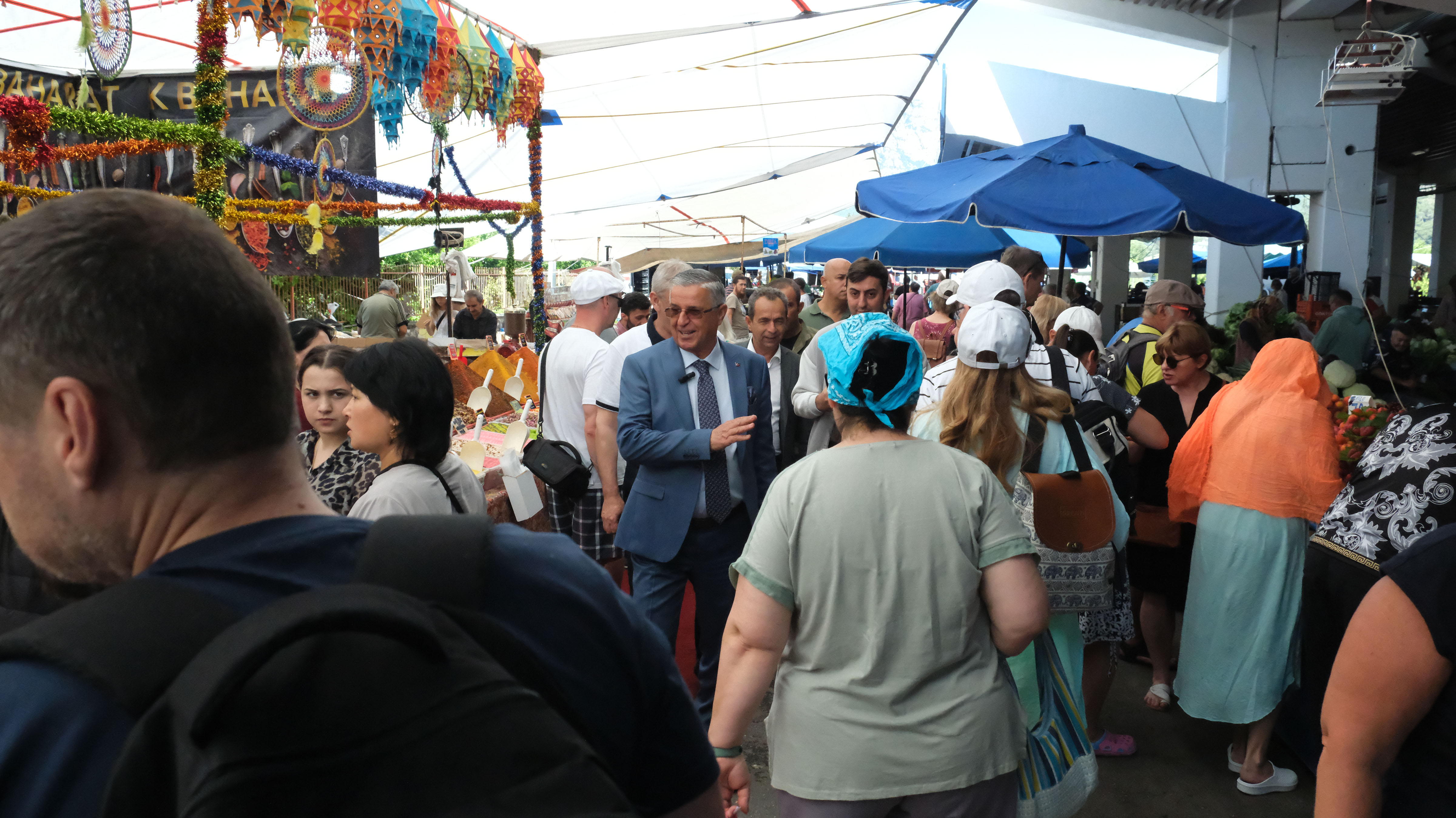 Kemer Belediye Başkanı Necati Topaloğlu, Pazartesi günleri ilçe merkezinde kurulan sebze ve meyve pazarında tezgah açan esnafı ziyaret etti.