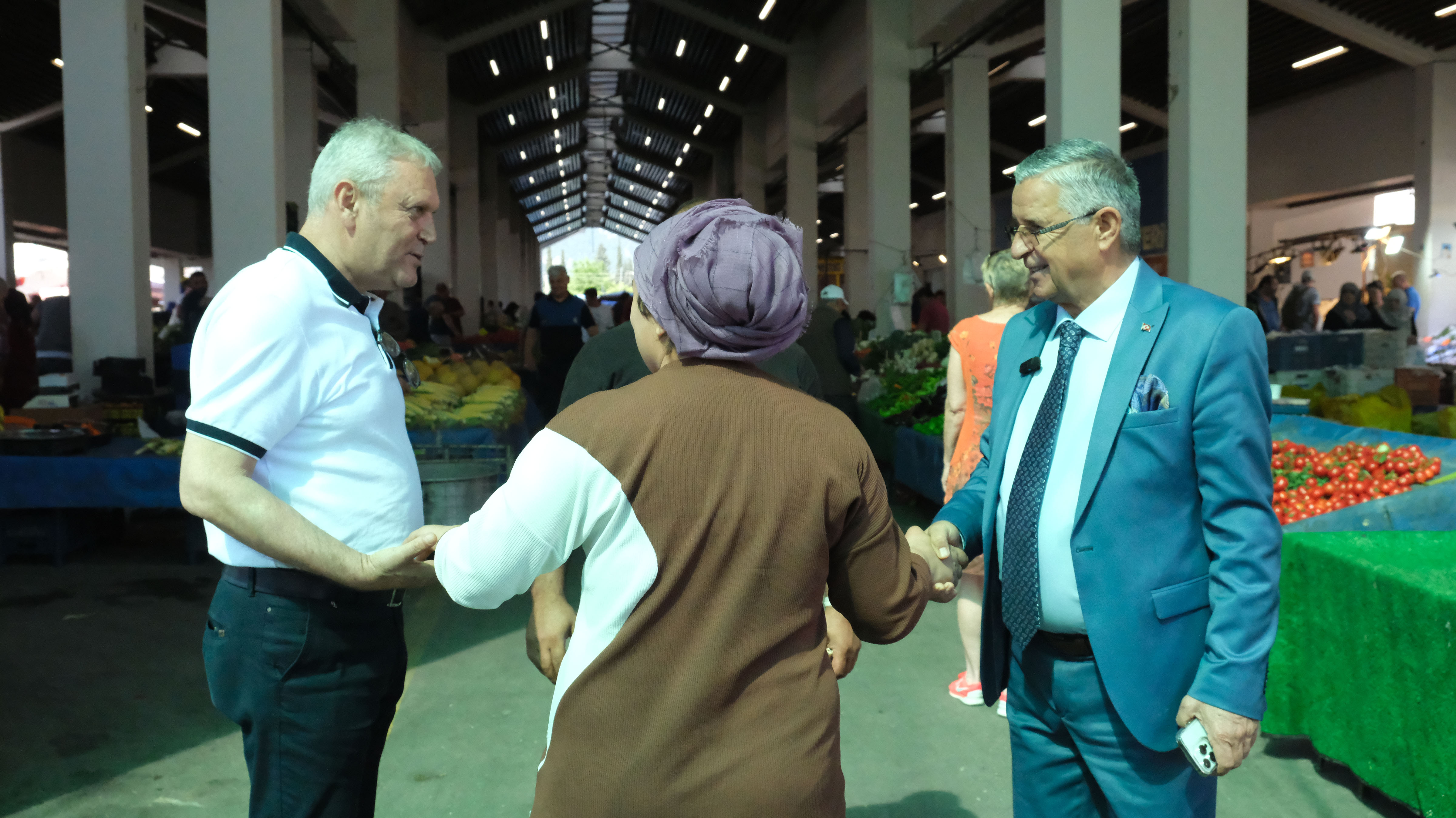 Kemer Belediye Başkanı Necati Topaloğlu'ndan pazar esnafına ziyaret