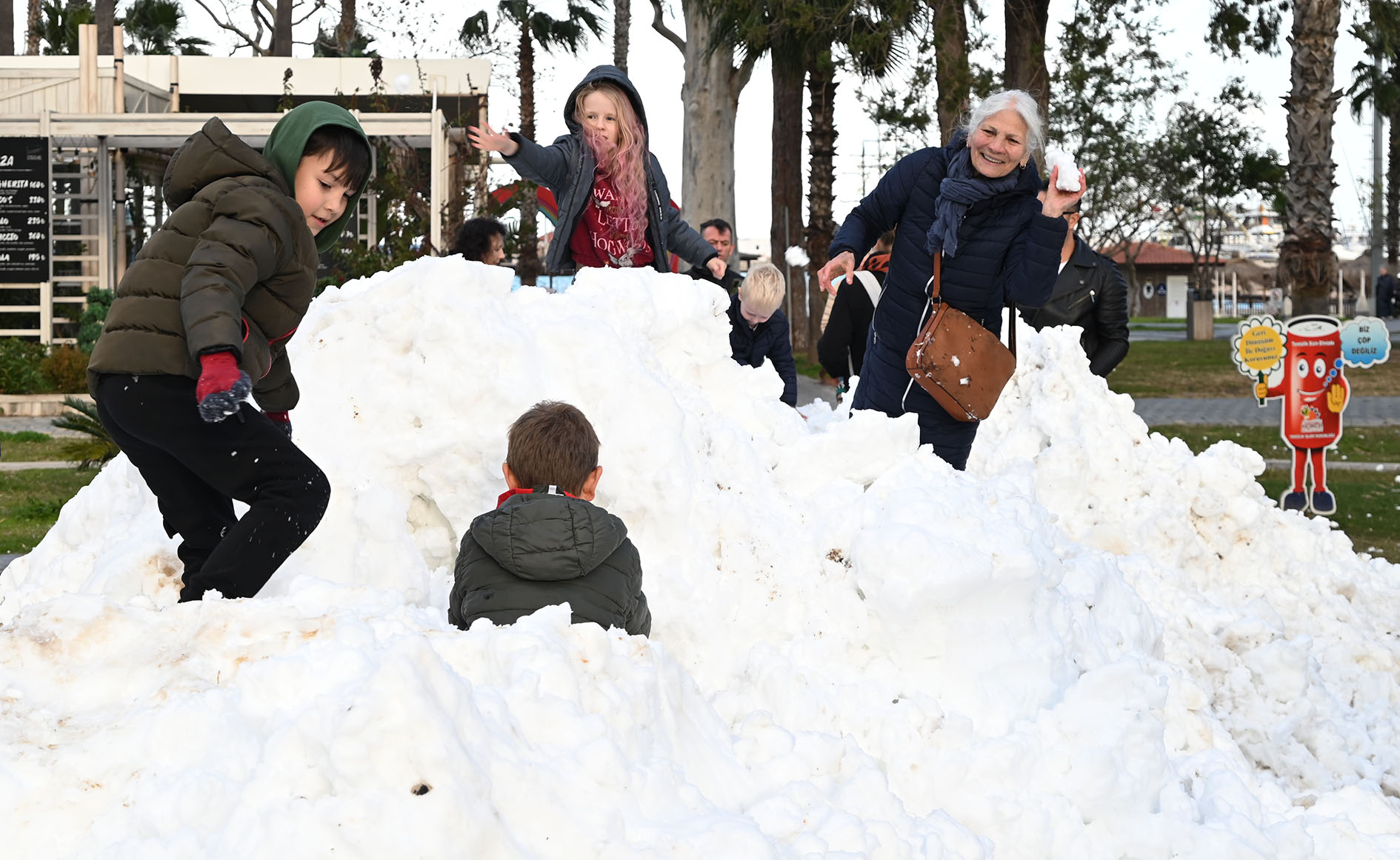 Kemer'de Çocuklar ve ailelerinin kar sevinci