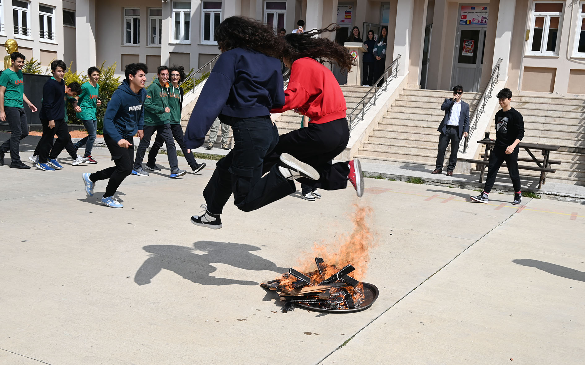 Kemer Belediye Başkanı Necati Topaloğlu, Ünal Aysal Anadolu Lisesi’nde yapılan Nevruz Bayramı kutlamasına katıldı. Göynük Fen Lisesi öğrencilerinin de yer aldığı kutlamaya katılan Başkan Topaloğlu, öğrencilerle ve öğretmenlerle selamlaşarak sohbet etti. Başkan Topaloğlu demir dövdüBaşkan Topaloğlu, Nevruz Bayramı kutlamaları kapsamında, okul bahçesinde yakılan nevruz ateşinin üzerinden atlayarak, demir dövdü. Başkan Topaloğlu’na öğretmen ve öğrenciler de eşlik etti. Öğrenciler ve öğretmenler, nevruz kutlamaları kutlamalar kapsamında çeşitli oyunlarda oynadı. Başkan Topaloğlu, yaptığı açıklamada, “Nevruz baharın müjdeleyicisidir. Ünal Aysal Anadolu Lisesi’nde yapılan nevruz kutlamalarına katıldık.Çocuklarımızla ve öğretmenlerimizle demir dövdük ve nevruz ateşinin üzerinden atladık. Tüm halkımızın Nevruz Bayramı’nı kutluyorum.” dedi.