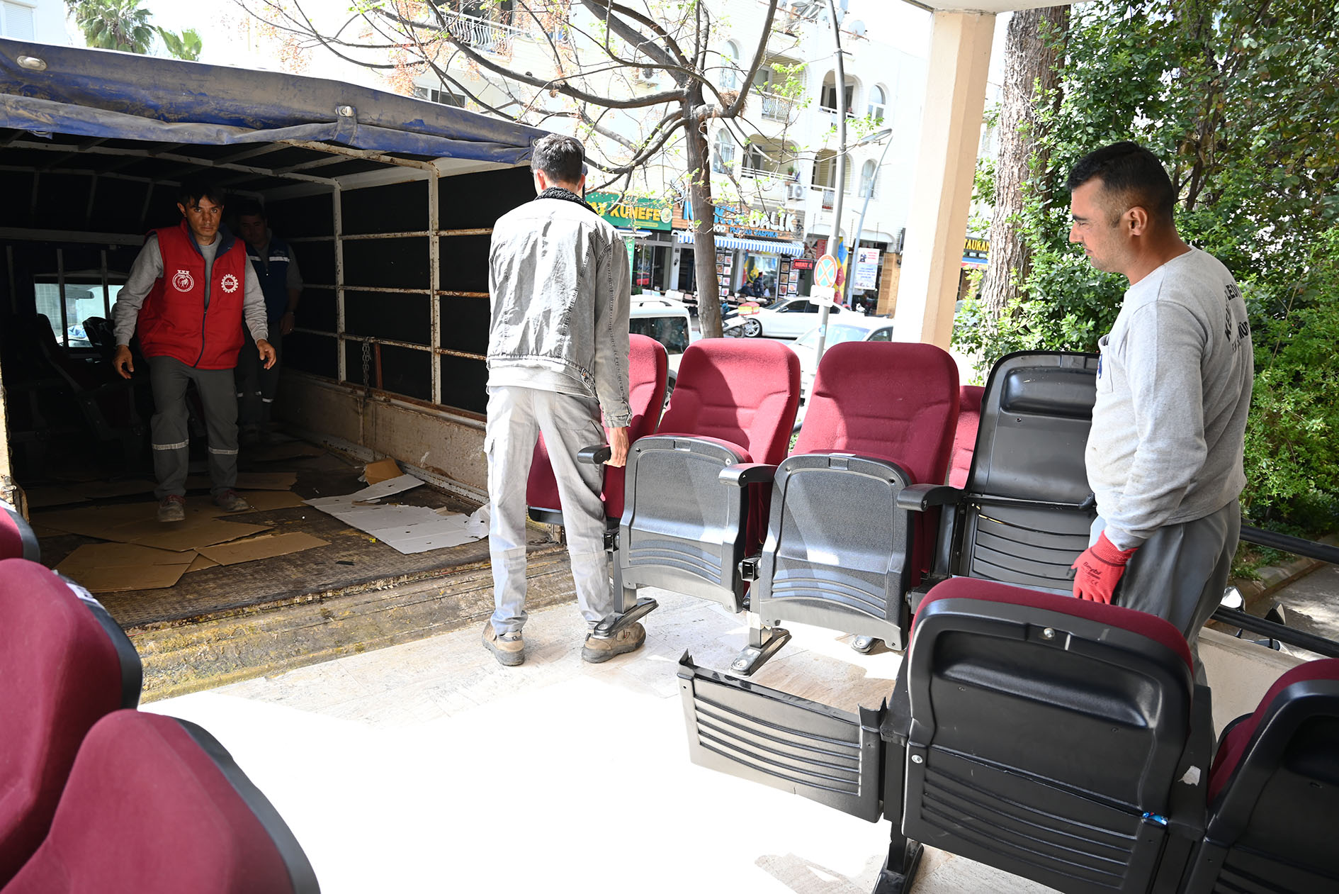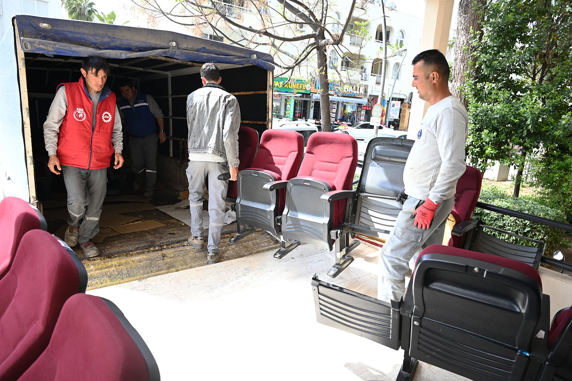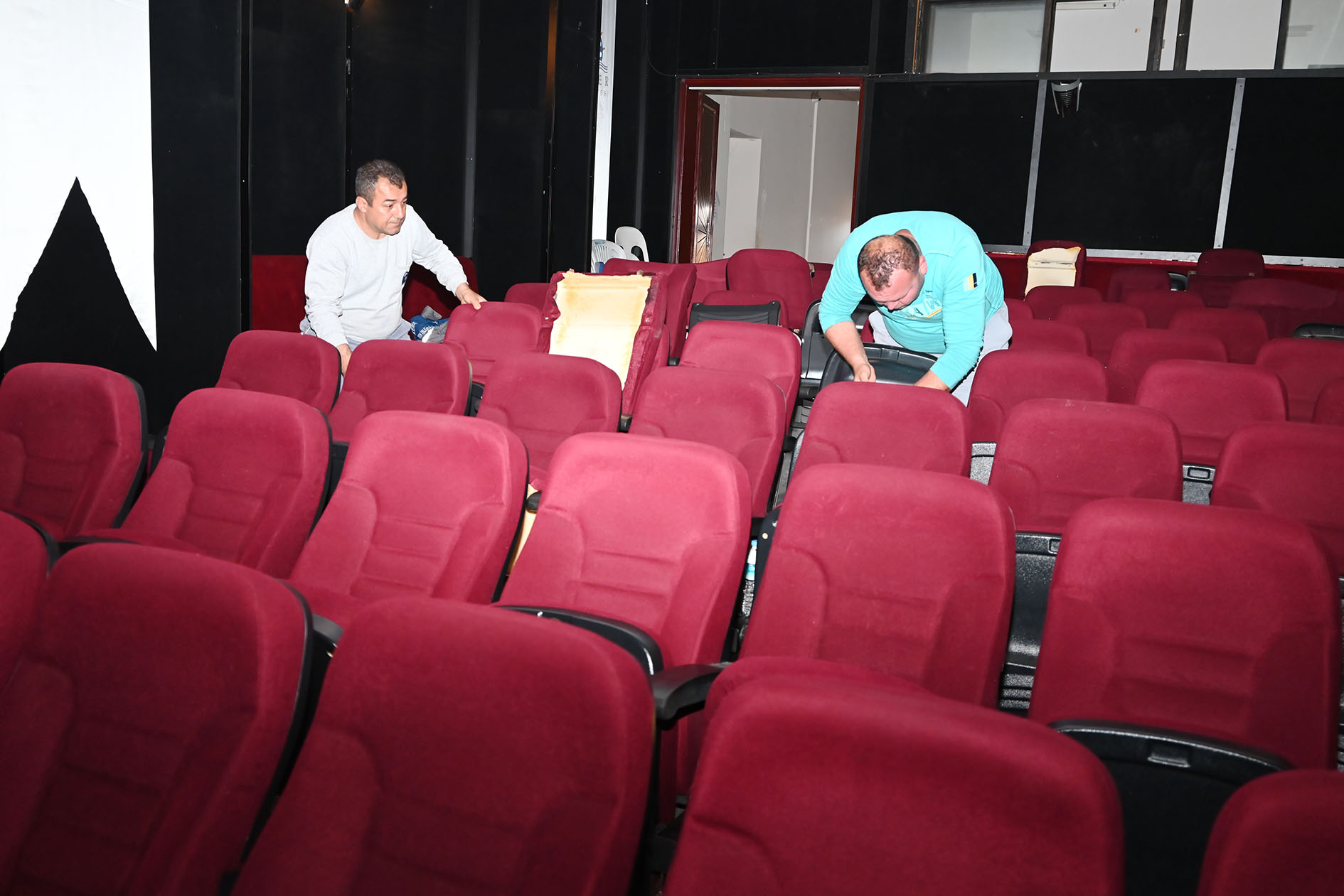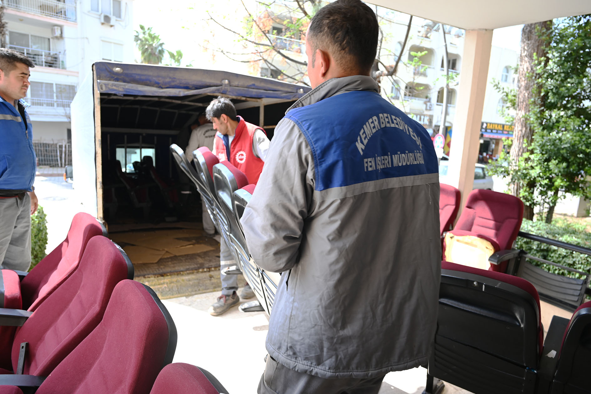 Kemer Belediye Başkanı Necati Topaloğlu’nun Kemer Belediyesi Kültür Salonu’nun hem sinema hem de tiyatro salonu olarak kullanılacağının müjdesini vermesinden sonra salonda çalışmalar başladı.