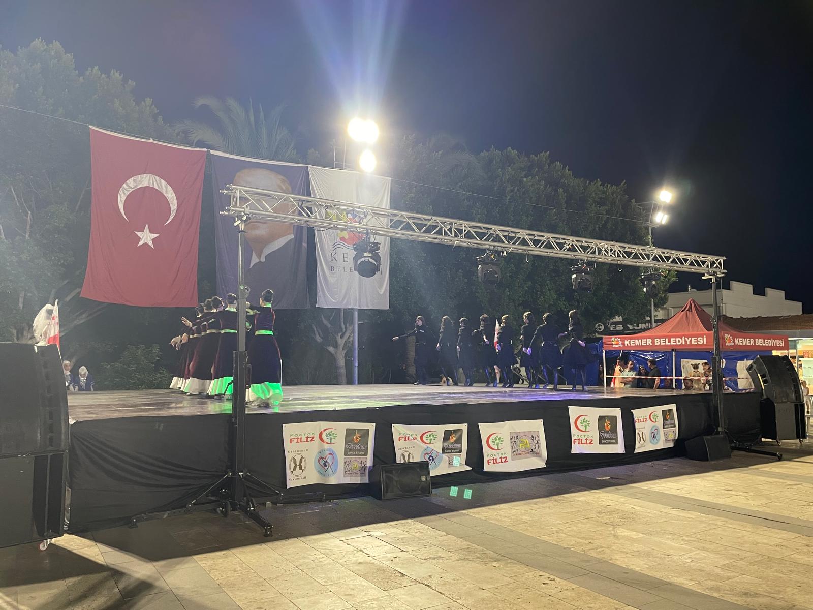 Kemer’de, Kemer Belediyesi’nin destekleriyle Uluslararası Genç Yetenekler Festivali organize edildi. Kemer Cumhuriyet Meydanı’nda Bağımsız Devletler Topluluğu Eğitim, Kültür, Yardımlaşma ve Dayanışma Derneği (FİLİZ) tarafından organize edilen festivale, Kemer Belediye Başkan Yardımcısı Mehmet Derya Baytekin, FİLİZ Başkanı Yana Balta, FİLİZ Başkan Yardımcısı Hasan Balta ve çok sayıda genç yetenek katıldı. Festivale katılan gençler, kendi ülkelerine ait dansları ve halk oyunlarını sergiledi. Genç yeteneklerin sergilediği performanslar izleyicilerden büyük beğeni aldı. Gürcistan'dan gelen Tsekuri 78 dansçısıyla izleyenlere unutulmaz bir gösteri sundu. Festivalde sahne alan Kemer’deki Freedom Dans Stüdyosu ve Pakhomova Open Dance Stüdyosu’nun dansçıları festivalin en genç grubu ödülünü aldı. Festival sonunda açıklama yapan Kemer Belediye Başkan Yardımcısı Mehmet Derya Baytekin, Kemer Belediye Başkanı Necati Topaloğlu’nun selamını ileterek, organizasyonda emeği geçenlere teşekkür etti. Başkan Yardımcısı Baytekin, festivale katılanlara çeşitli hediyeler verdi. FİLİZ Başkanı Yana Balta ise desteklerinden dolayı Belediye Başkanı Necati Topaloğlu’na teşekkür ettiğini dile getirdi.