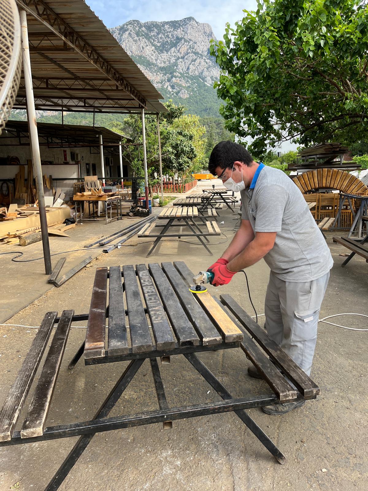 Kemer Belediyesi Fen İşleri Müdürlüğü ekipleri, Kındılçeşme Günübirlik Piknik Alanındaki piknik masalarını yeniliyor.