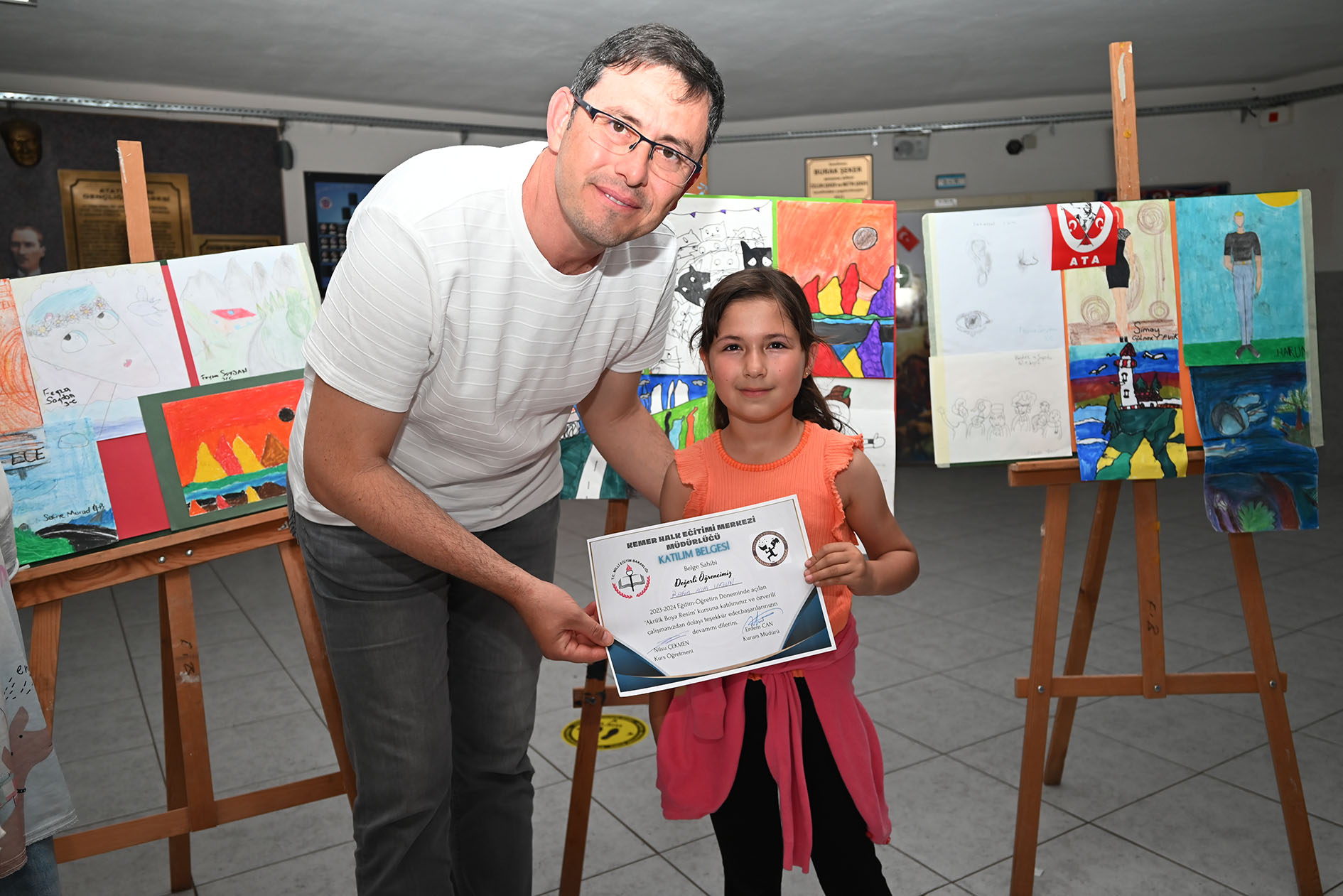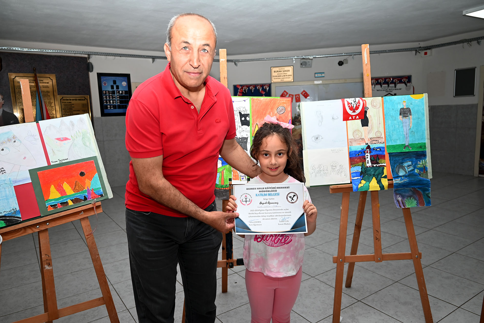 Kemer Merkez İlkokulu öğrencilerinin yaptığı resimler için okulda bir resim sergisi düzenledi.Kemer Merkez İlkokulu’nda düzenlenen serginin açılış kurdelasını kemer belediyesi Başkan Yardımcısı Mehmet Derya Baytekin, Kemer Turizmci ve İş İnsanları Derneği (KEMİAD) Başkanı Rıza Sönmez ve yönetim kurulu üyesi Mehmet Akbaba kesti. Başkan Yardımcısı Baytekin ve beraberindekiler, Ressam Nilsu Çekmen'in verdiği kurslar sonucunda 30 öğrencinin yaptığı resimleri tek tek inceleyerek, Ressam Çekmen’den bilgi aldı. Baytekin, resim sergisinin yapılmasında emeği geçen Ressam Çekmen'e teşekkür ederek, öğrencileri tebrik etti. Öte yandan Başkan Yardımcısı Baytekin, öğrencilere Kemer Belediye Başkanı Necati Topaloğlu'nun selamlarını ileterek, Gazi Mustafa Kemal Atatürk'ün Nutuk kitabını hediye etti.