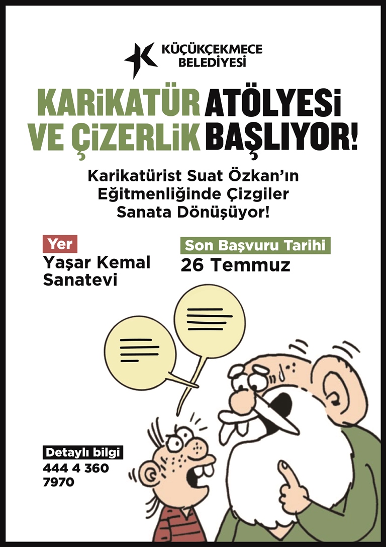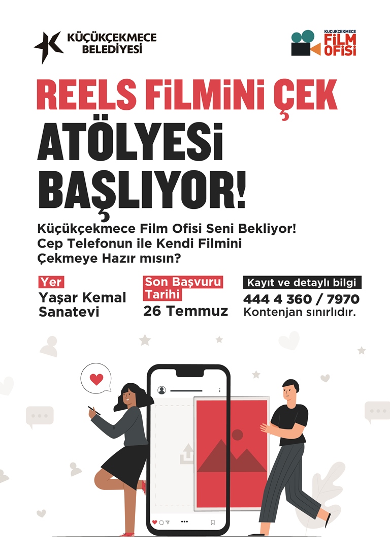 Küçükçekmece Belediyesi, Yaşar Kemal Sanat Evi’nde meraklılarına, mizahi yönlerini geliştirebilecekleri Karikatür ve Çizerlik Atölyesi’nin yanı sıra bir yerden başlamak isteyen film meraklılarına yönelik ‘Reels Filmini Çek’ Atölyesi gerçekleştirecek. Reels Filmini Çek Atölyesi’nin yanı sıra Karikatürist Suat Özkan eğitmenliğinde gerçekleştirilecek Karikatür ve Çizerlik Atölyesi için son başvuru tarihi 26 Temmuz. Atölyelere başvurular 444 4 360/7970 numaralı telefondan gerçekleştirilecek. Küçükçekmece Film Ofisi, geçtiğimiz yıl her ay farklı gruplarla senaryo, yönetmenlik, proje dosyası hazırlama, çekim teknikleri ve oyuncu yönetimi başlıklı konularda temel sinema atölyeleri gerçekleştirerek, Zeki Demirkubuz, Emin Alper gibi ünlü yönetmenleri öğrencileriyle buluşturdu. Film Yapım Atölyesi, kentte sinemanın desteklenmesi, genç yeteneklerin keşfedilmesi ve teşvik edilmesi amacıyla ‘Kısadan Anlat Kısa Film Proje Yarışması’nın da 3.’sünü gerçekleştirdi.