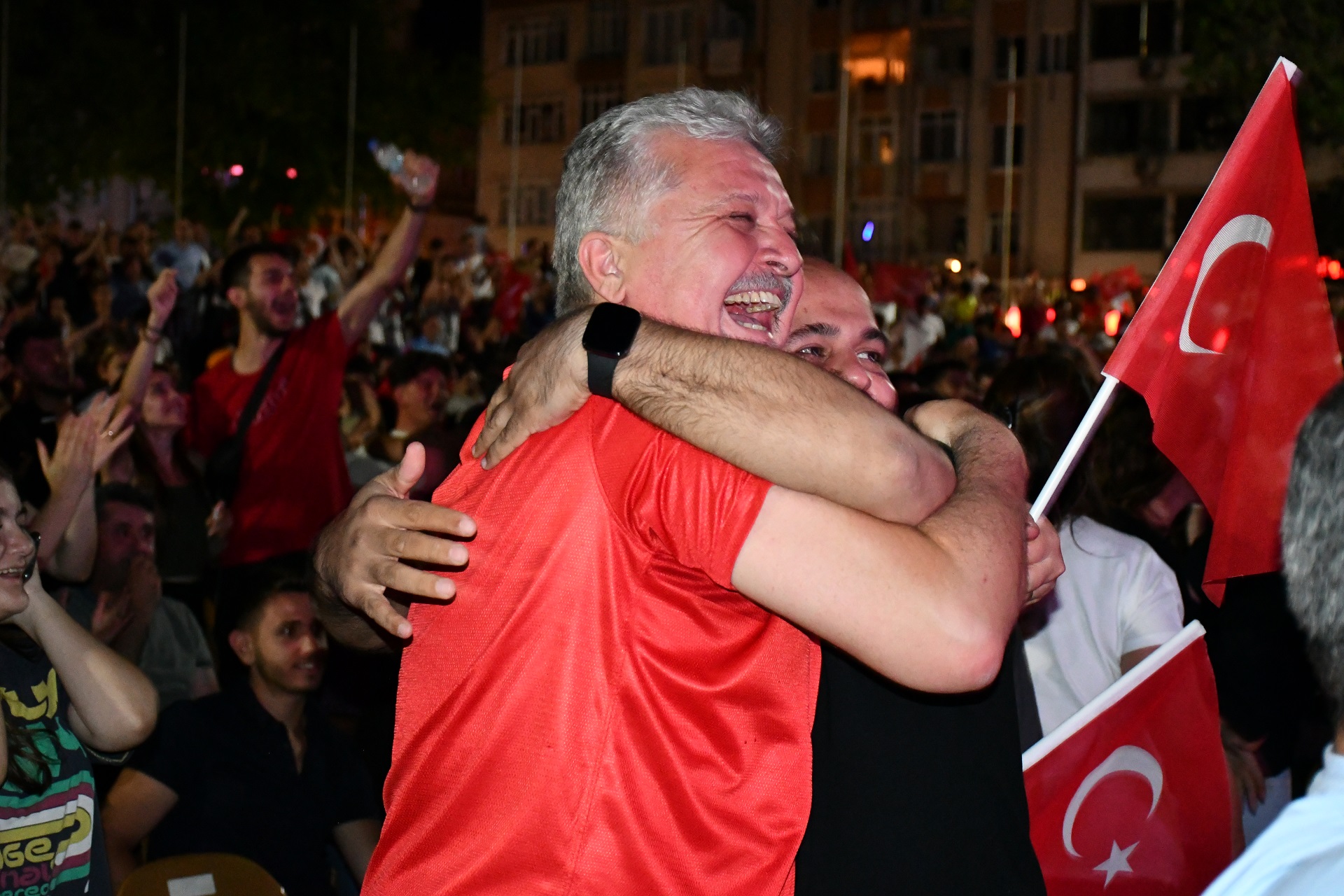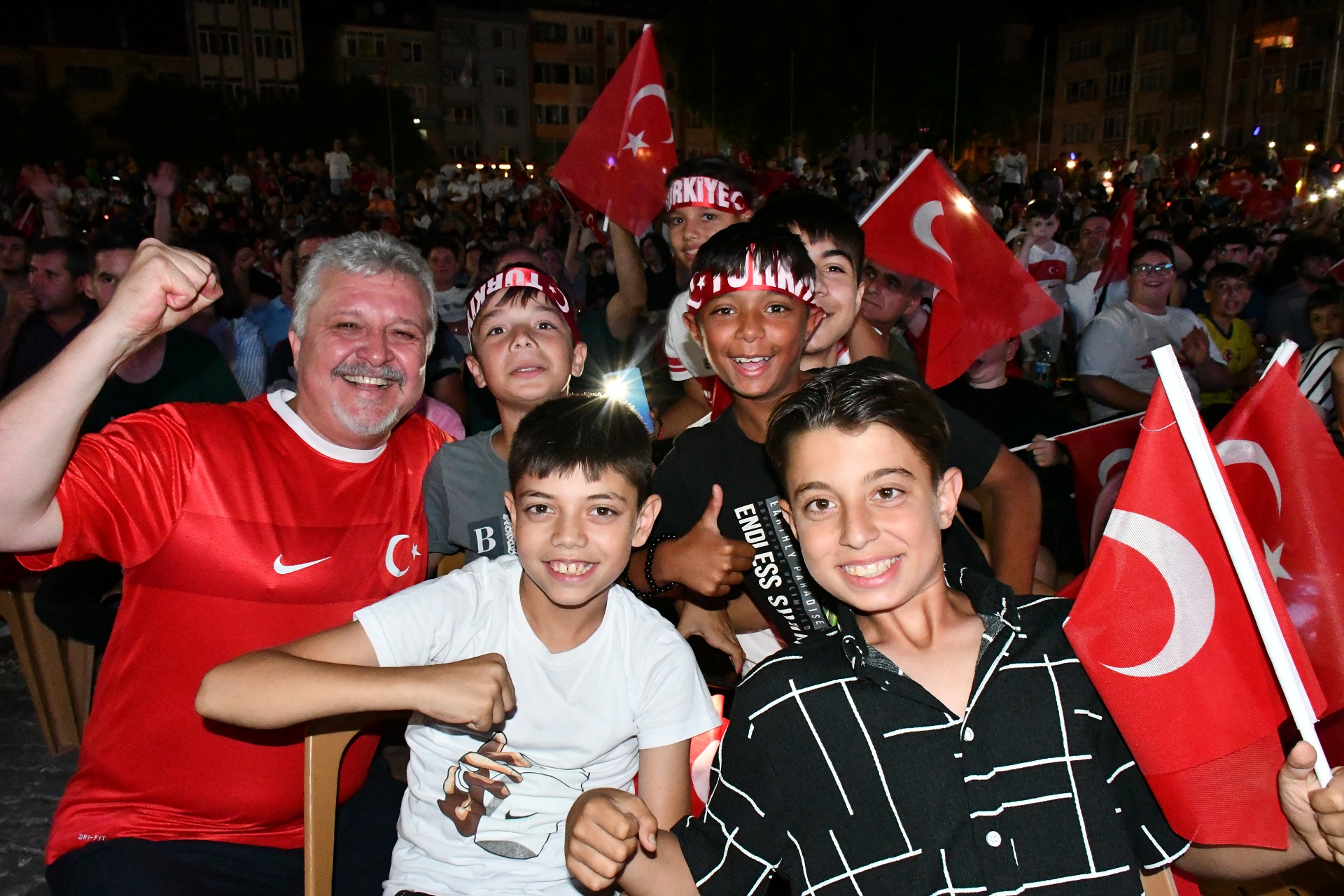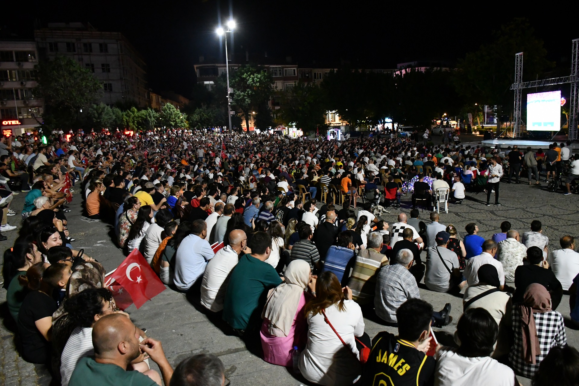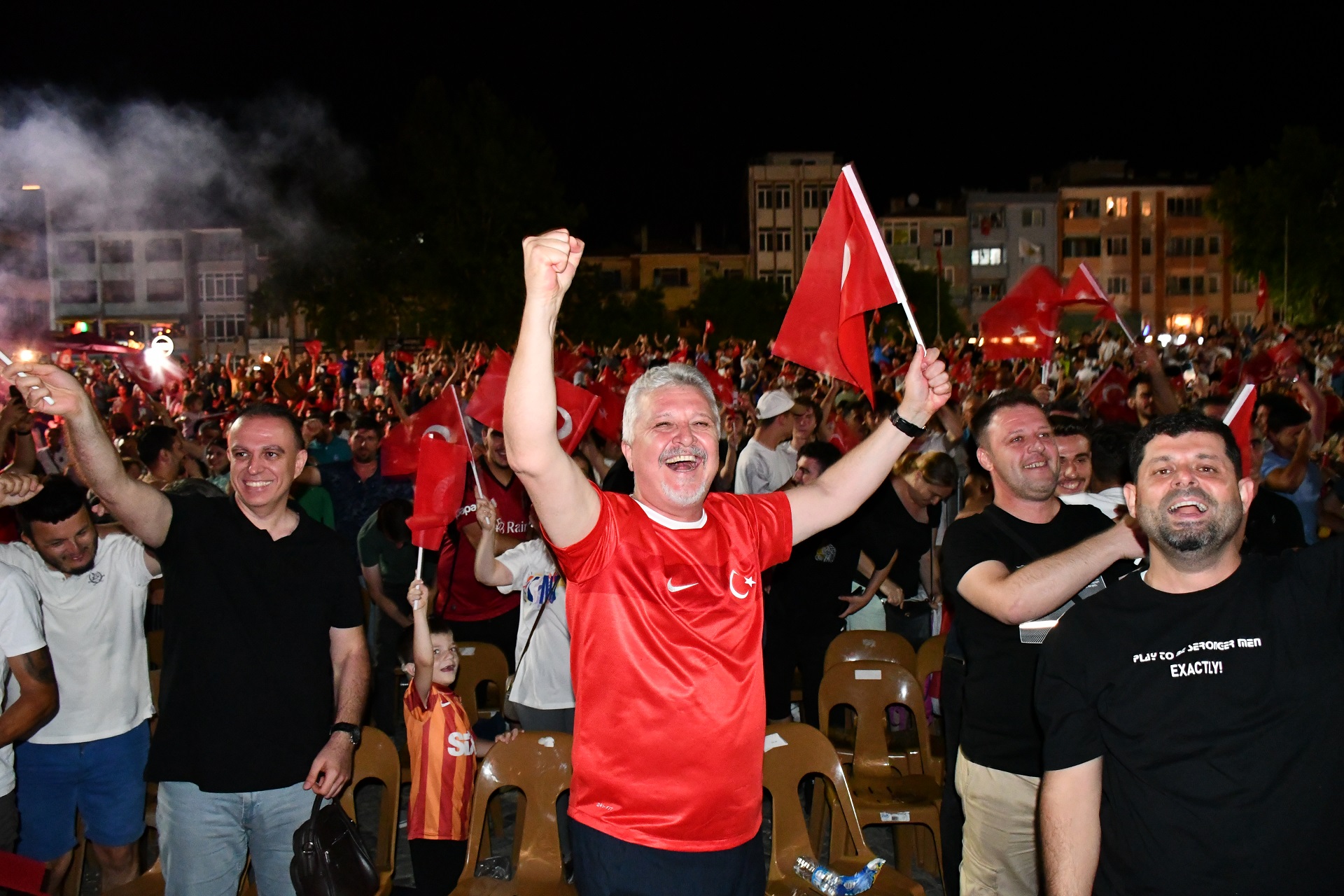 A Milli Takım’ın 1. dakika içinde öne geçmesiyle büyük coşkunun yaşandığı kongre Meydanı’nda binlerce kişi tek yürek oldu.59. dakikada Türkiye’nin farkı ikiye çıkarmasının ardından nefeslerin tutulduğu karşılaşmanın son düdüğü ile Kongre Meydanı’nda büyük sevinç yaşandı.Vatandaşlar ellerindeki meşaleleri yakıp Türk bayraklarını salladı, çalan müzikle çeyrek finali kutladı.