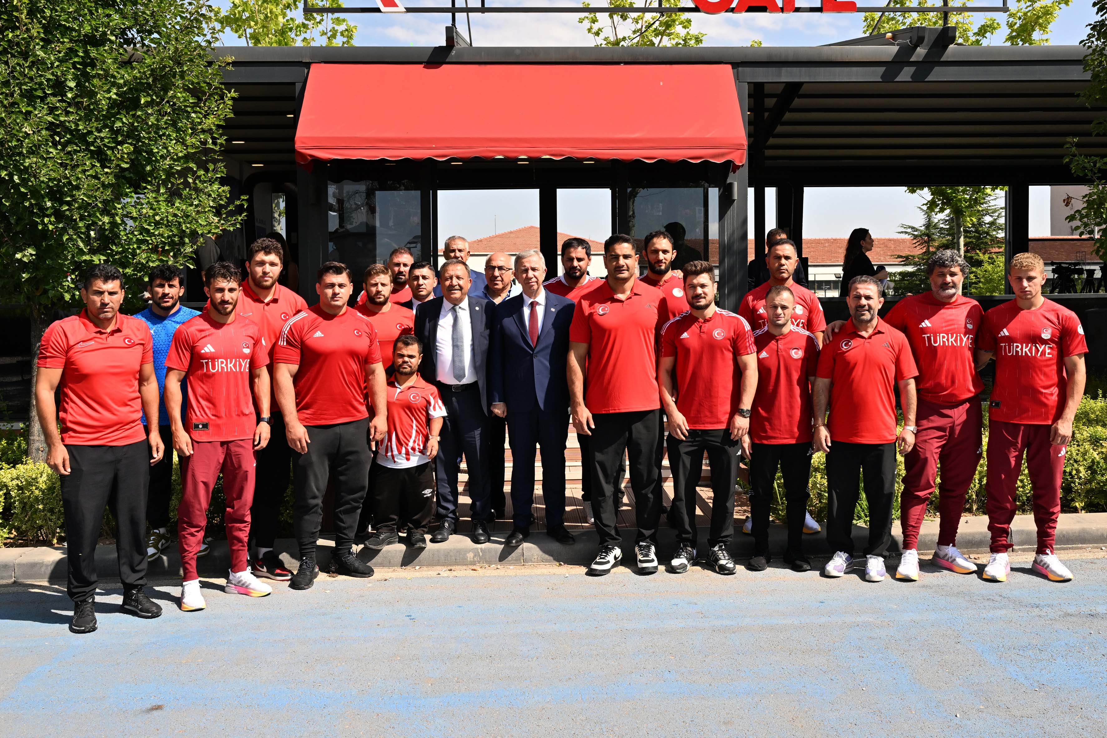 2024 Paris Yaz Olimpiyatları öncesi sporcularla bir araya geldiklerini ifade ederek konuşmasına başlayan Mansur Yavaş, “Güreşçilerimiz kampa, ardından da direkt Paris’e gidecekler. İnşallah bizler de öncelikle kendi sporcularımızın yanında olmaya çalışacağız.Taha başta olmak üzere diğer güreşçilerimizin başarıyla döneceklerine inanıyorum” dedi.