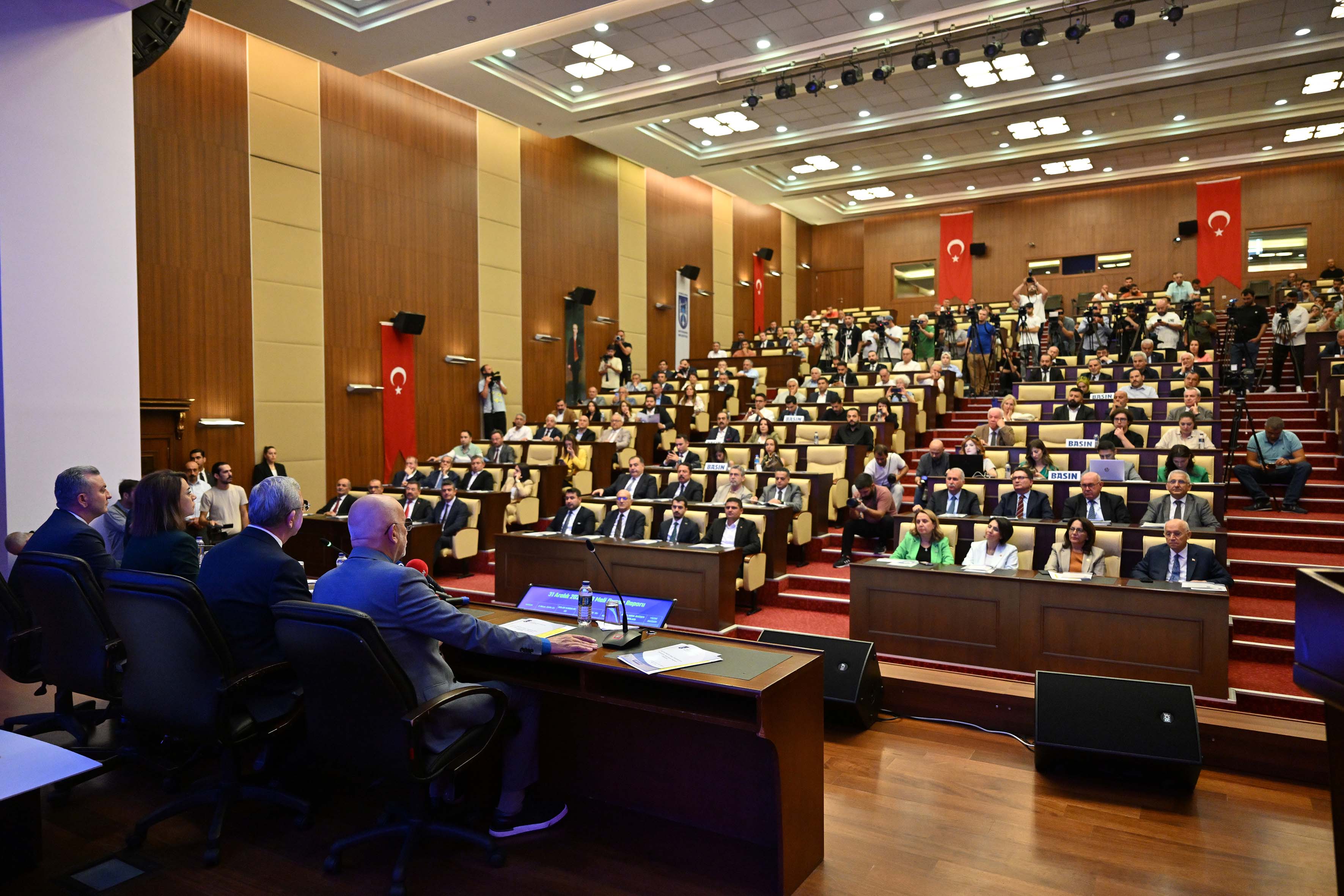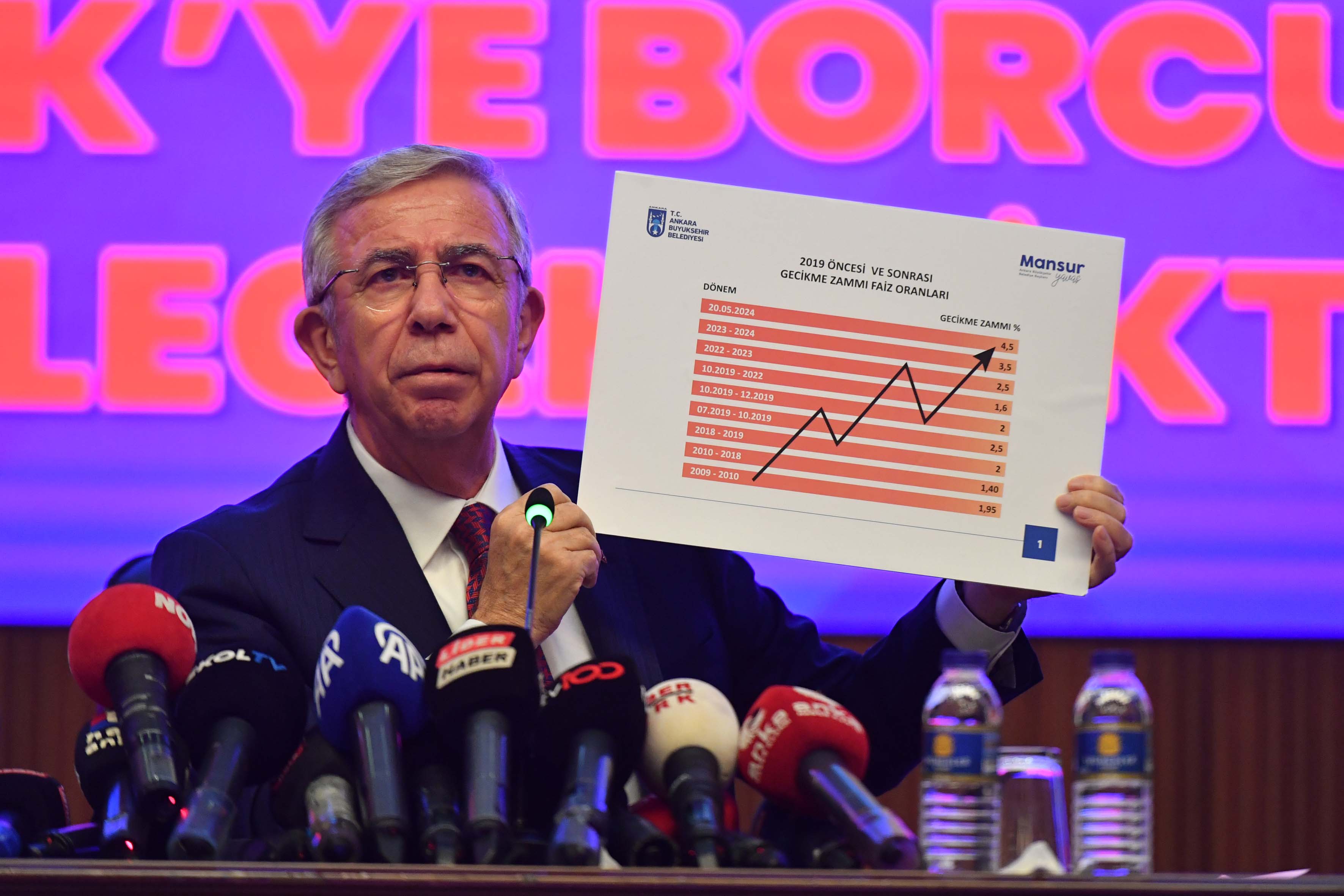 “Birazdan size bunları, neler yaptıklarını tek tek anlatacağım. Her yolu denediler ama başaramadılar.Başaramadıkları gibi insan öncelikli yönetim tarzımızı benimseyen Ankara halkı bize engel olmak isteyenlerin suratına yüzde 60’ın üzerinde bir oyu adeta çarparak ders verdi. Ancak anlıyoruz ki ders almamışlar. Yine belediyelerin üzerinden yüklenmeyi sürdürüyorlar.”“GERÇEKÇİ OLMAYAN PROJELER NEDENİYLE OLUŞAN BORÇ YÜKÜYLE KARŞI KARŞIYA KALDIK”