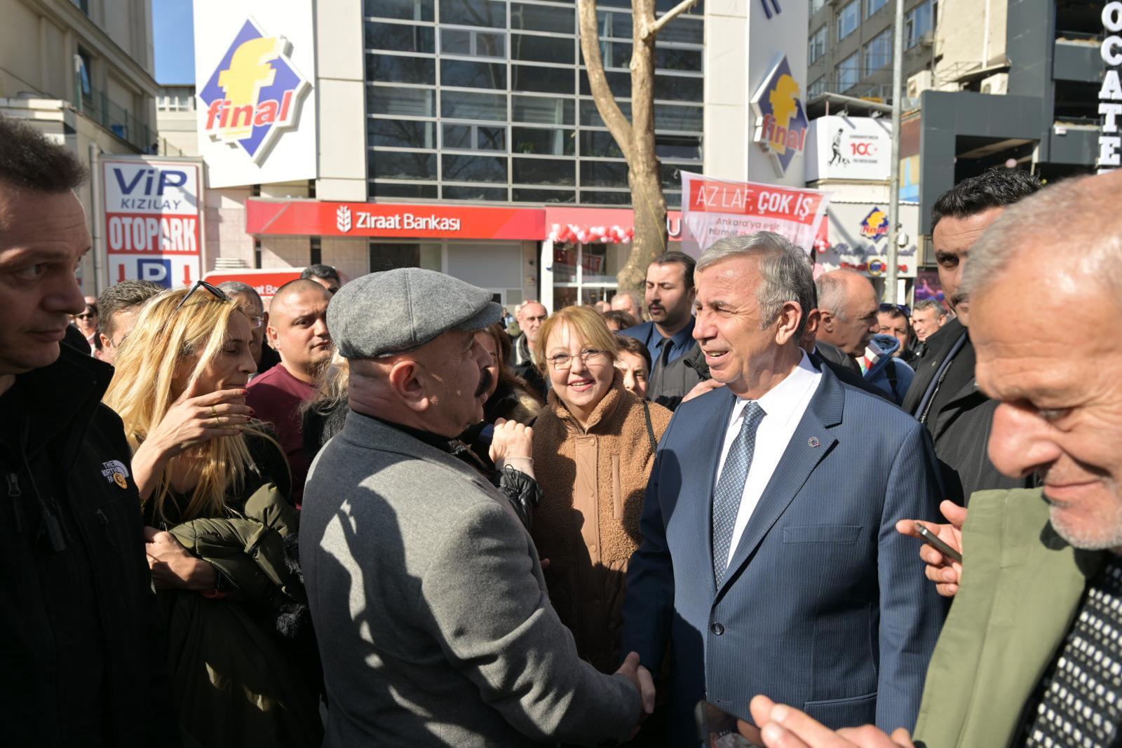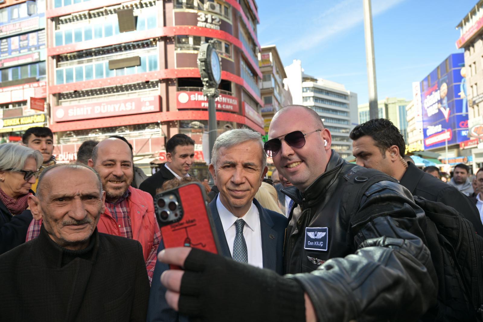 Mansur Yavaş’a ziyaretleri sırasında Çankaya Belediye Başkanı Alper Taşdelen de eşlik etti. “ESNAFI DESTEĞE DEVAM”Ziyaretinde taksici esnafına teşekkür eden Yavaş, “Göreve geldiğimden beri taksicilerden birkaç şikâyet dışında hiç şikâyet almadım. ‘Düğmeye basıyoruz, taksi geliyor. Hayret ediyoruz’ diyorlar. Sizlerin daha iyi hizmet verebilmesi için esnafı desteğe devam” dedi.Türkiye’de ilk defa hayata geçirilen “Başkent Taksi Projesi”ni de hatırlatan Yavaş, Ankara’daki tüm taksilere ücretsiz taksimetre ve kamera takılması sözünü yineledi.Taksicilerin ardından dolmuşçu esnafını ziyaret ederek sorunlarını dinleyen Mansur Yavaş, “Güvenpark’taki depolama alanının sit alanı olması nedeniyle rahat çalışma alanı bulamayan dolmuşçuların çok eksikleri var.Biz 5 yıldır elimizden geldiği kadar destekte bulunuyoruz, ilgili yerlere de yazı yazdık. Halk otobüslerine yaptığımız gibi dolmuşçu esnafımıza da destek olalım, hem onlar kazansın hem de vatandaşımızı daha ucuza taşımaya devam edelim” ifadelerini kullandı.SON DURAK ÇİÇEKÇİLER ÇARŞISIYavaş’ın Kızılay bölgesindeki son durağı Ankara Büyükşehir Belediyesi tarafından yenilenen Sakarya Caddesi Çiçekçiler Çarşısı oldu. Çiçekçi esnafı, daha konforlu ve modern hâle getirilen dükkânları için Yavaş’a teşekkürlerini iletti.