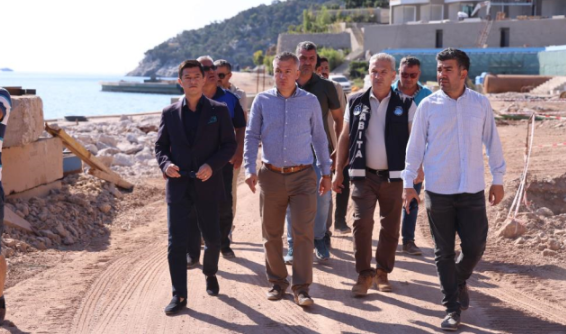Marmaris' te yasağa rağmen devam eden otel inşaatı, Marmaris Belediye Başkanı Acar Ünlü'nün gözetiminde denetlendi.