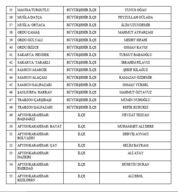 MHP, yerel seçimlere ilişkin 8 il, 40 büyükşehir ilçe ve 7 ilçe olmak üzere 55 adayın daha ismini açıkladı.