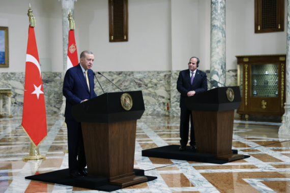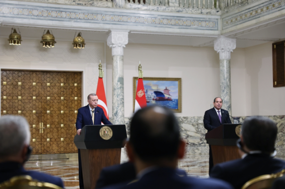 Cumhurbaşkanı Recep Tayyip Erdoğan, 12 yıl aradan sonra Mısır'a resmi ziyarette bulundu. Mısır ve Türkiye arasında imzalanan anlaşmalar sonrası iki lider açıklamalarda bulundu. Cumhurbaşkanı Erdoğan, ''Gazze halkının topraklarından sürgün ettirilmesi yönünde girişimler bizim için yok hükmündedir.'' ifadelerini kullanırken Mısır Cumhurbaşkanı Sisi ise ''Mısır ve Türkiye el ele vererek Gazze konusunda da çok iyi sonuçlar elde edebilecek.'' dedi.Cumhurbaşkanı Recep Tayyip Erdoğan ve Mısır Cumhurbaşkanı Abdulfettah es-Sisi, Yüksek Düzeyli Stratejik İşbirliği Konseyi Toplantılarının Yeniden Yapılandırılmasına İlişkin Ortak Bildiriyi imzaladı. İmzalar sonrası Cumhurbaşkanı Erdoğan ve Mısır Cumhurbaşkanı Sisi açıklamalarda bulundu.Gündemine Gazze'deki İsrail işgalini alan Erdoğan ve Sisi önemli mesajlar verdi. Cumhurbaşkanı Erdoğan, "Gazze halkının topraklarından sürgün ettirilmesi yönünde girişimler bizim için yok hükmündedir." derken Mısır Cumhurbaşkanı Sisi ise "Mısır ve Türkiye el ele vererek Gazze konusunda da çok iyi sonuçlar elde edebilecek." ifadelerini kullandı.Cumhurbaşkanı Erdoğan, resmi temaslarda bulunmak üzere geldiği Mısır'ın başkenti Kahire'de, Mısır Cumhurbaşkanı Sisi ile İttihadiye Sarayı'nda baş başa ve heyetler arası görüşmenin ardından ortak basın toplantısı düzenledi.Gazze Şeridi'ndeki İsrail işgalini gündemine alan Cumhurbaşkanı Erdoğan, "Ateşkesin bir an evvel tesisi ve insani yardımların engelsiz bir şekilde Gazze'ye sevki önceliğimizdir. Gazze halkının topraklarından sürgün ettirilmesi yönünde girişimler bizim için yok hükmündedir." dedi.Erdoğan ayrıca Türkiye ile Mısır arasındaki ticaret hacmine de değinerek, "Bugünkü istişarelerimizde, ticaret hacmini kısa süre içerisinde 15 milyar dolara çıkarmak için mutabık kaldık. Mısır savunma sektörüne önemli yatırımlar yapıyor. Mısır ile güç birliğine giderek ortak projeler geliştireceğimize inanıyorum." ifadelerini kullandı.Mısır Cumhurbaşkanı Abdulfettah es-Sisi ise Gazze'deki insanlık dramına ilişkin konuşarak "Mısır ve Türkiye el ele vererek Gazze konusunda da çok iyi sonuçlar elde edebilecek. Gazze'de derhal ateşkes sağlanması ve Batı Şeria'daki gerilimin yatıştırılması konusunda Türkiye Cumhurbaşkanı ile aynı fikirdeyim." dedi.Sisi, Türkiye ile ticaret hacmi hedefiyle ilgili ise "Yakın zaman içerisinde (Türkiye ile) 15 milyar dolarlık ticaret hedefini gerçekleştirmeyi amaçlıyoruz. Cumhurbaşkanı Erdoğan'ın önümüzdeki nisan ayında Türkiye'yi ziyaret etme davetine cevap vermeyi sabırsızlıkla bekliyorum." ifadelerini kullandı.