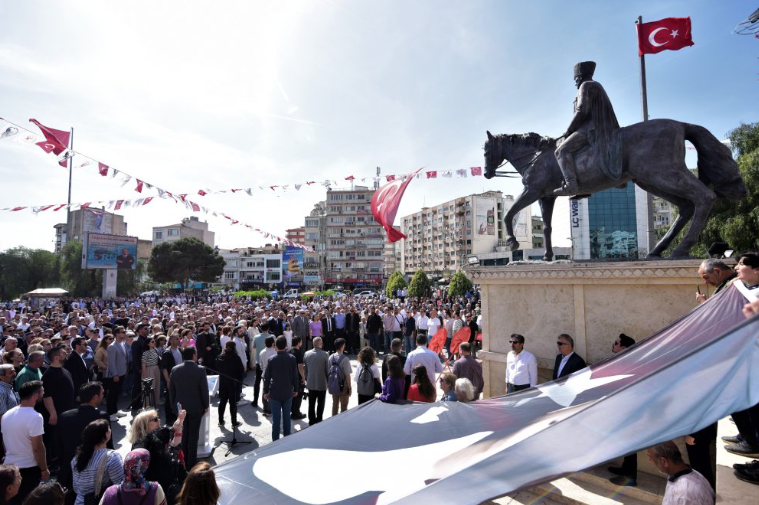 31 Mart Yerel Seçimleri’nde yüzde 49.66 oranında oy alarak Bornova Belediye Başkanı seçilen Ömer Eşki, ilçe seçim kurulundan mazbatasını alıp görevine başladı. Bornova İlçe Seçim Kurulu’ndan mazbatasını aldıktan sonra, Türk Bayrağı, Atatürk Posteri, bando ve yeni seçilen meclis üyeleri ve partililerden oluşan kortej eşliğinde Cumhuriyet Meydanı’na gelerek buradaki Atatürk Anıtı’na çelenk koyan Eşki, son olarak Bornova Belediye Başkanlığı makamına geçti.Bornovalıların sevgi gösterileri içinde Belediye binasına giren Başkan Eşki, “Ben CHP gençlik kollarında yetiştim. Ona uygun yaşadım, ona uygun yaşayacağım, ona uygun Bornova Belediye Başkanlığı yapacağım.Kimse benden aksini beklemesin. Ben Atatürkçüyüm, Kemalistim, solcuyum, laikim, kadın haklarından yanayım, insan haklarından yanayım, devrimciyim, bu ilkeler doğrultusunda tüm emekçi arkadaşlarımla, tüm yoldaşlarımla Bornova Belediyesi’nde önümüzdeki 5 yıl, güle oynaya, keyifle ama çalışarak, hep birlikte emeğimizi büyüteceğiz” diye konuştu.Türkiye için sevindimKonuşmasına CHP örgütü ile birlikte Atatürk Anıtı’nın önünde olmaktan büyük bir onur duyduğunu söyleyerek başlayan Başkan Ömer Eşki “Yorucu bir süreç geçirdik ama seçim akşamı tüm yorgunluğumuz silindi. Yıllardır seçim akşamları büyük bir hüzünle bakardık televizyon ekranlarına ve sapsarı bir Türkiye görürdük.Moraller bozulduğunda ‘Hadi İzmir’i görelim’ derlerdi. Şimdi o sarı harita sizlerin emeğiyle, inancıyla, çabasıyla bayrağımızın rengine döndü, kıpkırmızı oldu. Ben 1986 doğumluyum, ilk defa partimizin birinci parti olduğunu gördüm. Bu onur her şeyin üzerindedir. İnanın belediye başkanı olmaktan çok buna sevindim” dedi.Başkan Ömer Eşki’nin uzun yıllardır siyaseten birlikte yol yürüdüğü ve adaylık sürecinde en büyük destekçisi olan CHP Bornova İlçe Başkanı Ertürk Çapın’a teşekkür ettiği sırada Çapın’ın duygusallaşarak gözyaşlarına hakim olamadığı da gözden kaçmadı.İşimiz gücümüz Bornova’ya hizmetBornovalıların daha kaliteli bir yaşam sürdürmesi için elinden gelenin en iyisini yapacağını ifade eden Başkan Eşki, sözlerini şöyle sürdürdü:“Bornova halkına söz veriyorum; Bornova’nın neresinde bizim sahibimiz yok mu diye birisi düşünürse onun yanında olacağız. Bornova’da çocuklarımızdan yaşlılarımıza kadar tüm vatandaşlarımızın daha kaliteli bir yaşam sürmesi için elimizden geleni yapacağız.CHP ailesinin neferiİş arkadaşlarımızla barış ortamında, bütün işimiz gücümüz Bornova’ya hizmet etmek olacak. Bu hizmeti sunarken de içinden yetiştiğim CHP ailesinin, bu büyük geleneğin Cumhuriyet’i kuran, devrimleri inşa eden bu büyük partinin bir neferi olduğumu asla unutmadan sürekli bir şekilde bu yapıya layık olmaya çalışarak, kul hakkına riayet ederek, sonuna kadar emekten yana olarak hizmetlerimizi sürdüreceğiz. Belediye çalışanlarının emeğini ezdirmeyeceğim. Herkes emeğinin karşılığı neyse onu sonuna kadar alacak.İyi ki oy vermişim diyeceksinizBeş senenin sonunda Bornova’da herkese iyi ki CHP’ye oy vermişim, iyi ki CHP’liyim, iyi ki Atatürkçüyüm dedirtmek için mücadele edeceğim. Türkiye’yi CHP iktidarıyla buluşturmak için elimizden ne geliyorsa yapacağız.”