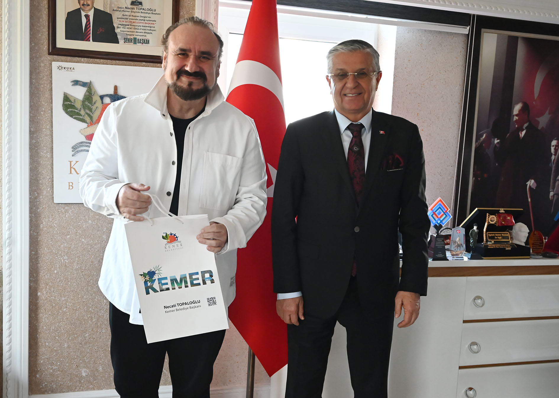 Türkiye’nin önde gelen opera sanatçılarından olan Hakan Aysev, Kemer Belediye Başkanı Necati Topaloğlu’nu makamında ziyaret etti.