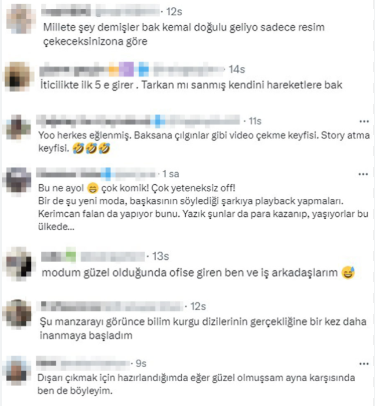 Modacı Kemal Doğulu, geçtiğimiz günlerde Denizli'de bir kadınlar matinesinde sahne aldı. Sahnede şarkı söyleyen Doğulu'nun sadece kendisinin eğlendiği anlar alay konusu oldu.Bir dönem moda programında jürilik yapan Kemal Doğulu aynı zamanda DJ'lik makyajla da yakından ilgileniyor.Geçtiğimiz günlerde Denizli'de kadınlar matinesi düzenleyen Doğulu'nun sadece kendisinin eğlendiği anlar dikkat çekti.Jüriliğe ara veren ve uzun süredir bir projede yer almayan Kemal Doğulu, kadınlar matinelerinde sahneye çıkmaya başladı.Son olarak Denizli'de sevenleriyle buluşan Doğulu, sahnede şarkı söylerken bir yandan da dans etti.Ünlü ismin o anlarını kayda alan birçok kadının hiç eğlenmediği ve yüzlerinin hiç gülmediği anlar sosyal medyada gündem oldu.Alay konusu olan Kemal Doğulu, herhangi bir açıklama yapmadı.İşte Doğulu'nun videosuna yapılan bazı yorumlar...