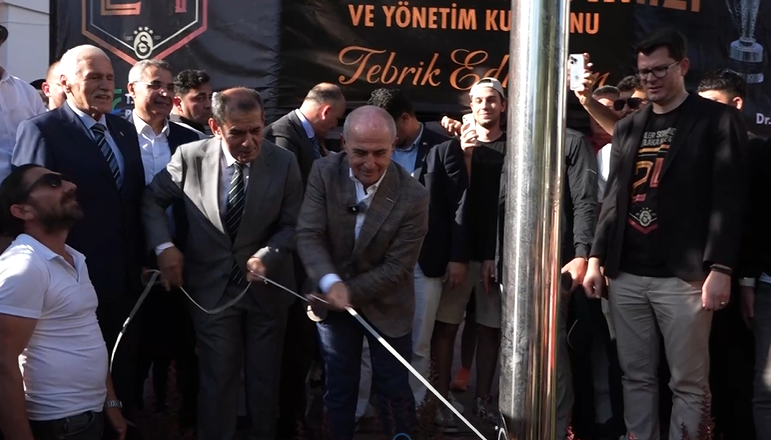 Trendyol Süper Ligi 2023-2024 sezonunda şampiyon olarak mutlu sona ulaşan Galatasaray’ın bayrağı törenle Büyükçekmece Şampiyonlar Anıtı’na çekildi.