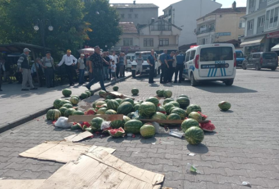 Sinop'un Erfelek ilçesinde, karpuz satışı için gerekli izinlerin verilmediği iddiasıyla, bir esnaf sıra dışı bir eyleme imza attı. İzin almakta zorluk çeken vatandaş, getirdiği kamyon dolusu karpuzu Erfelek Kaymakamlığı'nın önüne döktü.Esnaf, karpuzlarını satmak için gerekli izinleri almak üzere Erfelek Belediyesi'ne başvurmuştu. Ancak, belediyenin kendisine yer göstermemesi ve izin vermemesi nedeniyle sinirlenen vatandaş, çözümü karpuzları kaymakamlık binası önüne dökmekte buldu. Kamyon kasasında getirdiği karpuzları parçalayan esnaf, büyük bir kısmını kaymakamlık önüne serdi.Eylemin yapıldığı anlarda çevredeki vatandaşlar, şaşkınlık içinde durumu izledi. Bazı vatandaşlar olayın görüntülerini cep telefonlarıyla kaydederken, dökülen karpuzlar kaymakamlık önünde dikkat çekici bir görüntü oluşturdu. Karpuzların olay yerinden kaldırılması için Erfelek Belediyesi'ne ait bir kepçe çağrıldı.Olayın ardından polis, protestoya ilişkin inceleme başlattı. Karpuzları döken kişinin kimliği ve neden böyle bir eyleme başvurduğu araştırılıyor. Eylemin arkasındaki nedenler ve sonuçları, yerel yönetimle yapılan görüşmelerin yanı sıra, izin süreçleriyle ilgili yaşanan aksaklıkların kamuoyuna yansımasını da içeriyor.
