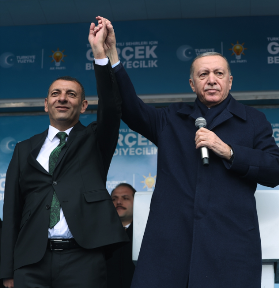Cumhurbaşkanı ve AK Parti Genel Başkanı Recep Tayyip Erdoğan, partisinin Ağrı Dörtyol Kavşağı'nda düzenlenen mitinginde konuştu. Alanda coşkulu bir kalabalığa seslenen Erdoğan, "Sırtını örgüte dayayan siyasi temsilciler, İstanbul'da ve diğer başka yerlerde kirli pazarlıklarla kendi ikballerini kotarmanın peşindeler" dedi.Ağrı'nın asırlarca irfana, kültüre, medeniyete, değerlere Ağrı Dağı gibi yüce bir gönüllülükle sahip çıktığını ifade eden Erdoğan, Anadolu'yu tehditlere karşı bir kalkan gibi koruyan serhat şehrinin, cesaretiyle yiğitliğiyle fedakarlığıyla hep örnek olduğunu söyledi.Bu şehrin insanlarının çalışkanlıklarıyla sabırlarıyla duruşlarıyla farklarını gösteren birer metanet abidesi olduğuna dikkati çeken Erdoğan, sözlerini şöyle sürdürdü
