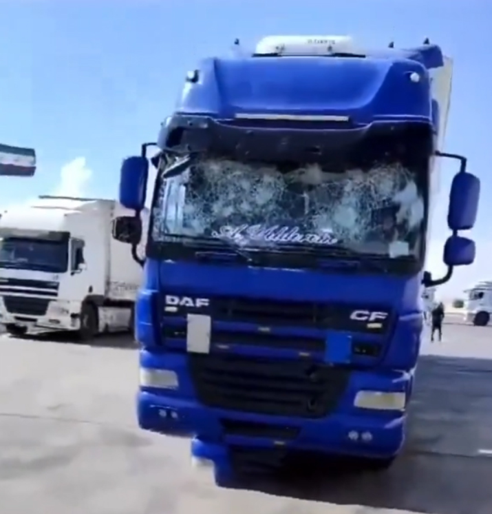 Sosyal medyada yayılan görüntülerde, Türkiye'ye dönen tırların büyük hasar aldığı, camlarının kırıldığı ve kaportalarında göçükler olduğu görüldü. Saldırılar sırasında bir tır şoförünün başından yaralandığı da görüntülere yansıdı.Sosyal Medyada Yayınlanan Görüntüler