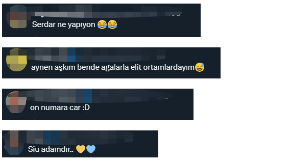 Fenerbahçe'nin yıldız futbolcusu Serdar Dursun'un İzmirli kadınlarla olan diyaloğu sosyal medyada gündem oldu. Dursun'un o anlarına ise hayranları tarafından yorum ve beğeni yağdı.Fenerbahçe'ye tekrar geri dönen ve son oynanan Çaykur Rizespor maçında attığı golle takımının galip gelmesinde büyük rol oynayan yıldız futbolcu Serdar Dursun'un bir grup kadınla sohbet ettiği görüldü.Videodaki kadınların Serdar'ın "Hepsi güzel baksana" demesinin ardından kahkahaya boğulduğu görülürken, aralarından birinin "İzmirliyiz de onun için kim ne dersin" dediği de duyuldu.Yıldız futbolcunun o anlarını gören sosyal medya kullanıcıları ise Serdar Dursun'a birbirinden komik binlerce yorum yaptı.