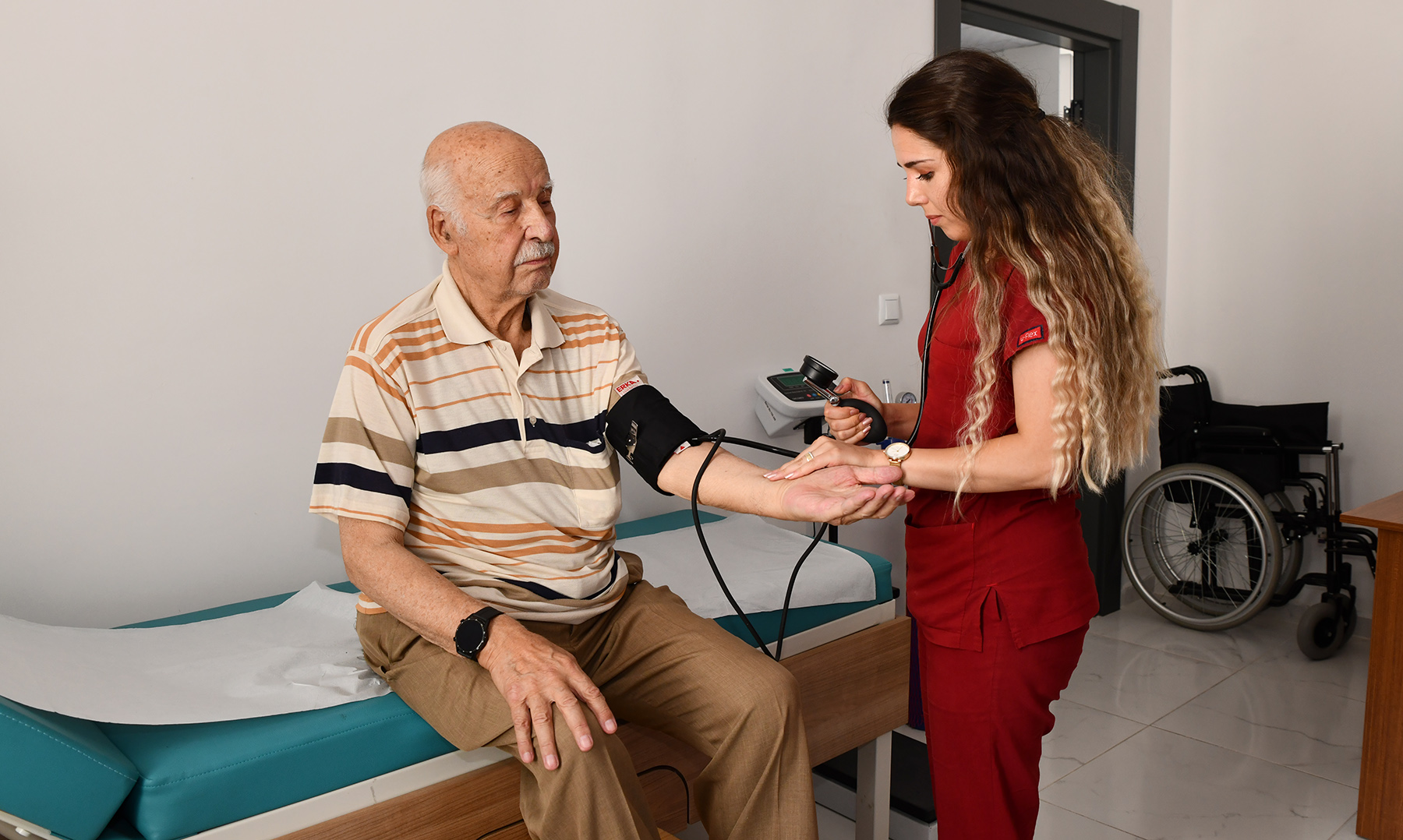 Merkezde deneyimli vatandaşların sağlıklı yaşam sürdürebilmeleri için günlük muayeneleri, ilaç takipleri ve sağlık kontrolleri yapılıyor. Ayrıca merkez sakinlerinin ihtiyaçları doğrultusunda fizyoterapist eşliğinde bedensel yaşlanmaları önleyici bireysel ve grup egzersizleri de yapılıyor.