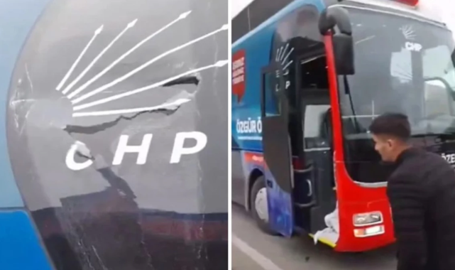CHP Genel Başkanı Özgür Özel'in Karadeniz seçim turuna katılmak üzere yola çıkan CHP otobüsü, Trabzon'da taşlı saldırıya uğradı.