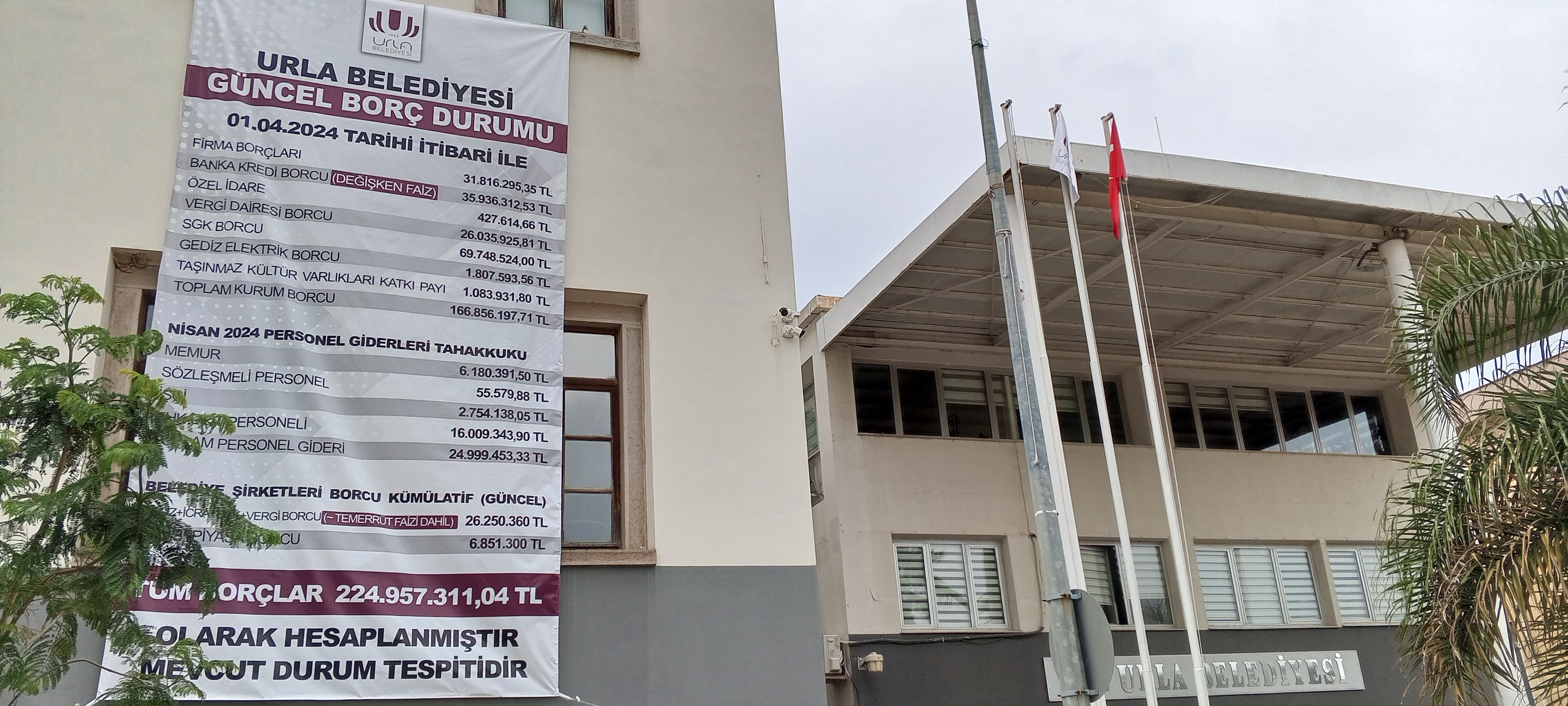 Urla Belediye Başkanı Selçuk Balkan 01 / 04 / 2024 ‘ tarihi itibari ile ( Belediyenin personel giderleri, Tahakkuku güncel, (Kümülatif) Belediye Şirketleri , (Değişken) faizle kurumun mali durumunu ilan etti.