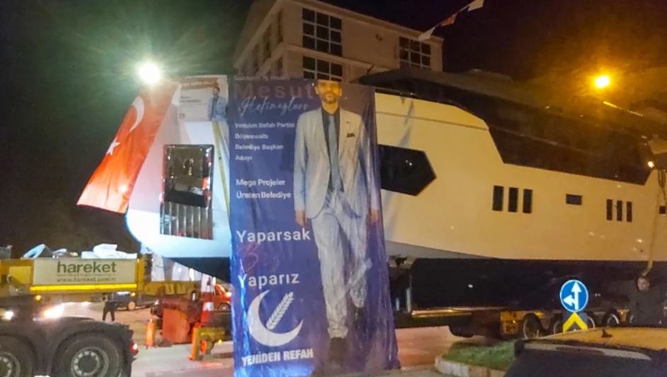 Antalya'nın Döşemealtı ilçesinde Yeniden Refah Partisi'nin belediye başkan adayı ve aynı zamanda iş insanı olan Mesut Hekimoğlu, Dubaili bir milyoner için 3 yılda fabrikasında yaptığı lüks yatla seçim konvoyu düzenledi. Denize indirilmek için fabrikadan çıkartılan lüks yatın yüklendiği kamyon, partililerin ve seçim otobüsünün de katılımıyla ilçe sokaklarında gezdirildi.Yerel seçimlerde Antalya'nın Döşemealtı ilçesinden Yeniden Refah Partisi'nin (YRP) belediye başkan adayı Mesut Hekimoğlu'nun, ilçede lüks yatla yaptığı konvoy dikkat çekti.Yeniden Refah Partili aday, kamyona yüklenen lüks yatla seçim konvoyu düzenlediİş insanı Hekimoğlu, organize sanayi bölgesinde faaliyet gösteren fabrikasında Dubaili bir iş insanı için 3 yılda yapımı tamamlanan 25 metre uzunluğundaki yatı, denize indirmek için fabrikadan çıkarttı. Kamyona yüklenen özel yata ise Hekimoğlu'nun isminin yazılı olduğu bayraklar ve Türk bayrağı asıldı.Yeniden Refah Partili aday, kamyona yüklenen lüks yatla seçim konvoyu düzenledi