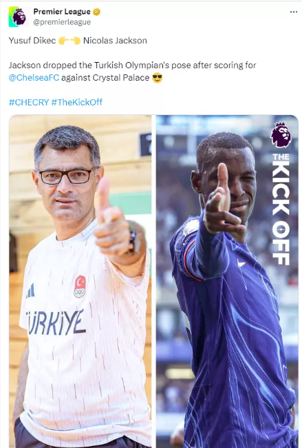 Chelsea, İngiltere Premier Lig'in 3. hafta maçında Crystal Palace'ı 1-1 berabere tamamladı. Maçın tek golünü atan Nicolas Jackson, gol sevincinde dikkat çeken bir hareketle gündem oldu. Jackson, golü attıktan sonra kale arkasındaki taraftarlara koşarak, Paris Olimpiyatları'nda büyük yankı uyandıran milli atıcı Yusuf Dikeç'in ikonik pozunu taklit etti.Nicolas Jackson'ın attığı golün ardından verdiği bu poz, Yusuf Dikeç'in Paris Olimpiyatları'nda sergilediği unutulmaz pozuyla birebir örtüşüyordu. Jackson'ın bu sevincinin ardından, Chelsea kulübü sosyal medya hesabından "Boom" notuyla bu anı paylaştı.İngiltere Premier Lig'in resmi sosyal medya hesabı da Jackson'ın bu özel gol sevincini göz ardı etmedi. Premier Lig hesabı, yusuf dikeç ile birlikte Jackson'ın pozunu paylaşarak bu anı geniş bir kitleyle paylaştı.Yusuf Dikeç'in pozunun taklit edilmesi ve Premier Lig resmi hesabının bu paylaşımı, sosyal medya üzerinde büyük ilgi gördü. Paylaşımlar, binlerce beğeni ve yorum aldı, futbol ve olimpiyat sporları arasında köprü oluşturan bu özel an, spor severler tarafından takdir edildi.Bu olay, sadece futbolun değil, aynı zamanda olimpiyat sporlarının da ne kadar etkili olabileceğini ve sporcular arasındaki etkileşimin ne kadar geniş bir yankı uyandırabileceğini bir kez daha gözler önüne serdi.
